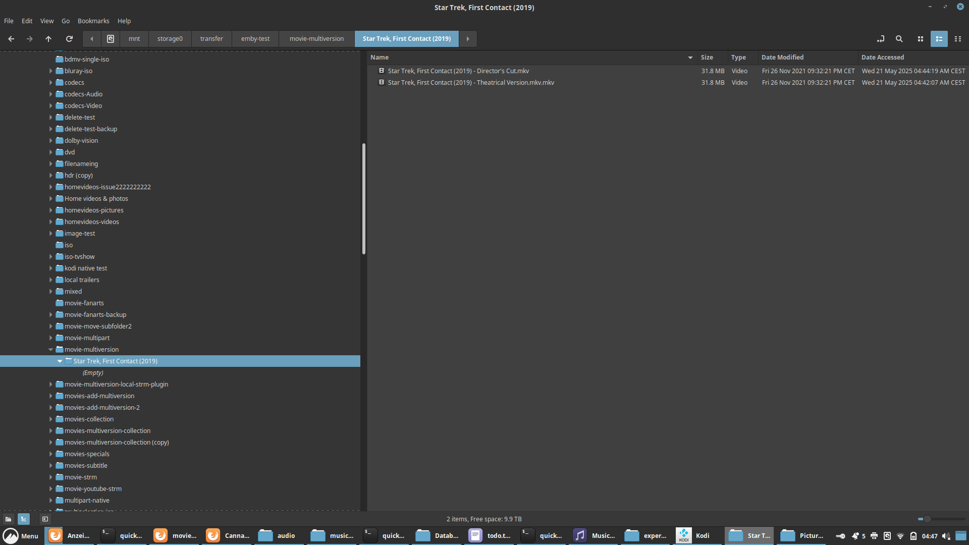 redcuts 2 Posted May 20, 2025 Author Posted May 20, 2025 Danke schonmal für die Arbeit und Mühen. Kurz zu Erläuterung: Im Dateisystem heißen die Datei "Film (2019) - Theatrical Version.mkv" und "Film (2019) - Director's Cut.mkv". Die zwei Bindestriche am Anfang sollten nur symbolisieren, dass die Filmversionen im entsprechenden Ordner liegen. Sprich Film (2019)/Film (2019) - Theatrical Version.mkv und Film (2019)/Film (2019) - Director's Cut.mkv 1