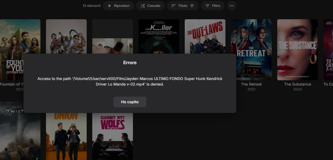 Neminem 1516 Posted May 27, 2025 Posted May 27, 2025 23 hours ago, servit00 said: System.UnauthorizedAccessException: System.UnauthorizedAccessException: Access to the path '/Volume1/User/servit00/Film/Jayden Marcos ULTIMO FONDO Super Hunk Kendrick Driver Lo Manda v-02.mp4' is denied. It pretty evident ? Server side permissions.