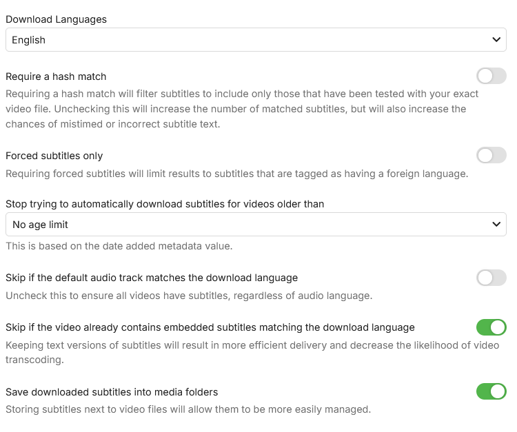Luke 42078 Posted July 4, 2025 Posted July 4, 2025 On 6/28/2025 at 3:14 PM, user84 said: I wasn't before but I am now. Is there a way for me to target the downloads so that I can get the subtitles for things I want before others? @user84one option is to do those manually: Manual Subtitle Downloads You may also want to set the age limit option so that the server won't keep searching over and over for subtitles for your older content. Please let us know if this helps. Thanks.