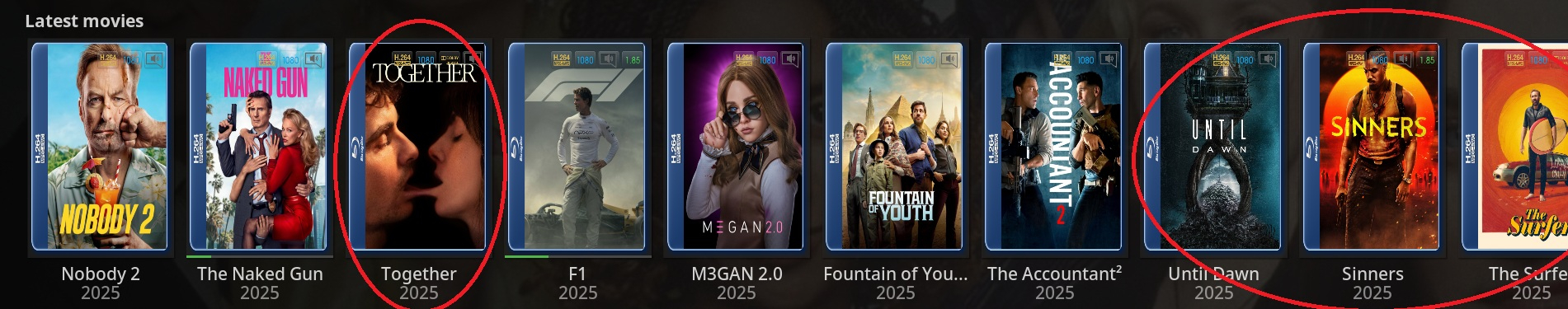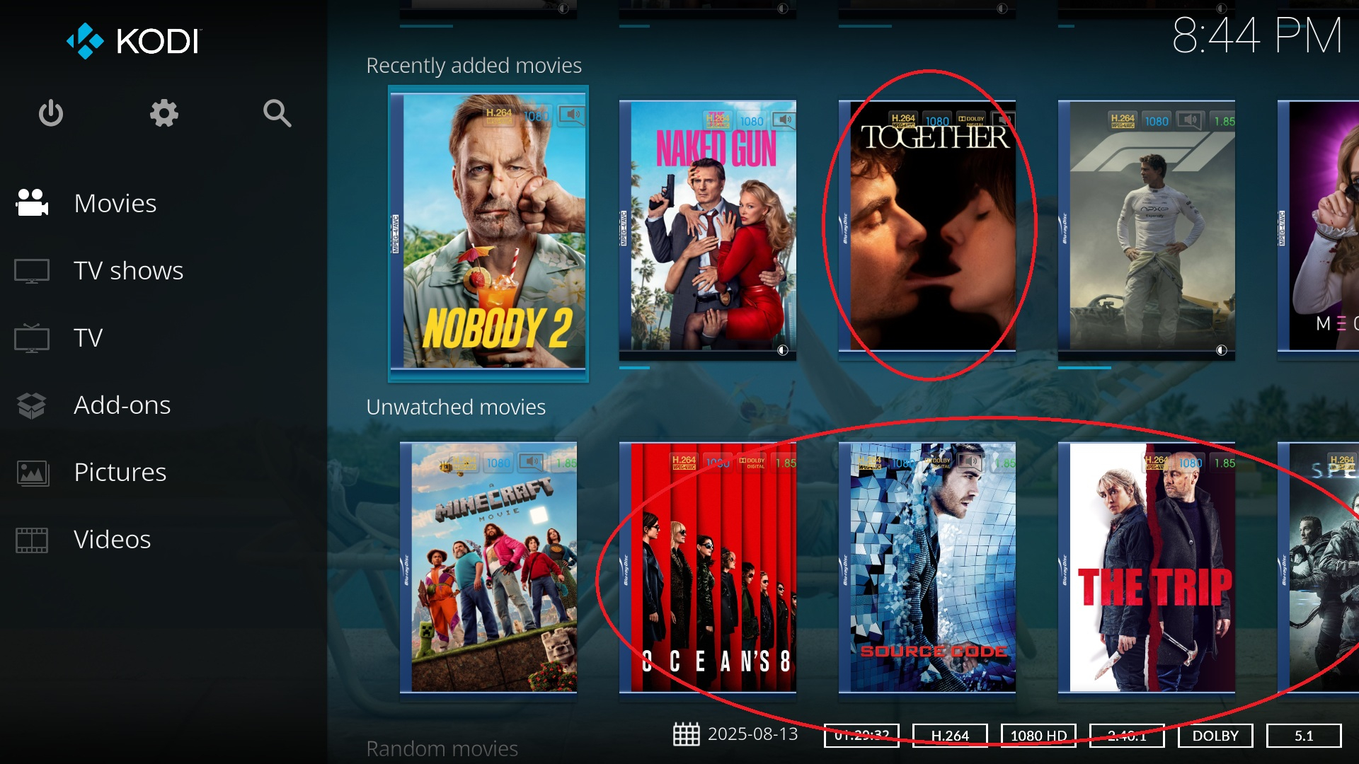 quickmic 1703 Posted September 15, 2025 Author Posted September 15, 2025 (edited) 2 hours ago, DarWun said: The issue happened again. E4K is showing movies as unwatched again, even though Emby properly shows them as watched. Latest Movies as per Emby web client: Latest Movies as per E4K on RPi4 (LibreElec): I changed to the default Estuary skin to rule out skin node issues. It shows that there are actually a lot more watched movies that E4K/Kodi are showing as unwatched. All circlede movies on the image below are watched and should not be showing up as unwatched: I've attached logs from the timeframe when these movies started showing up as unwatched in E4K. After doing a library repair, the issue was resolved. I'm not sure what is causing E4K to go out of sync with the Emby server with respect to watched/unwatched movies. kodi.log 2.56 MB · 0 downloads embyserver.txt 4.92 MB · 0 downloads Was this a multiversion movie and you removed a version? 2025-09-14 20:28:15.830 Info App: Removing item from database, Type: Movie, Name: Together, Path: /volume1/MediaStorage/Users/DarWunder/Videos/Movies/Together (2025)/Together (2025) [Download].mkv, Id: 2222402 Edited September 15, 2025 by quickmic
