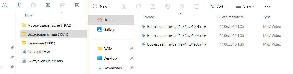 WingDog 16 Posted June 25, 2025 Author Posted June 25, 2025 5 hours ago, Luke said: How are your files named and organized? Most of my files named in Russian language.year.partX.extension just like this this is Captain Nemo https://www.themoviedb.org/movie/167627 why partX? it's very clear - I'm moving from Plex to Emby and used the same UNC paths for Emby's libraries. In that case I have both Plex and Emby configured to use the same network shares as libraries. Using the "partX" option was my unsuccessful attempt to solve the same problem with Plex. there is no mixed type library and I didn't find any suitable solution. Now I made additional share just for the Emby's mixed content type library and moving files there with rename, so the common logic is next: if this is the only one episode Movie: name (year).extension if this is more than one episode Movie (miniseries): Folder named as Movie (year) | name (year).sXXeXX.extension like this
