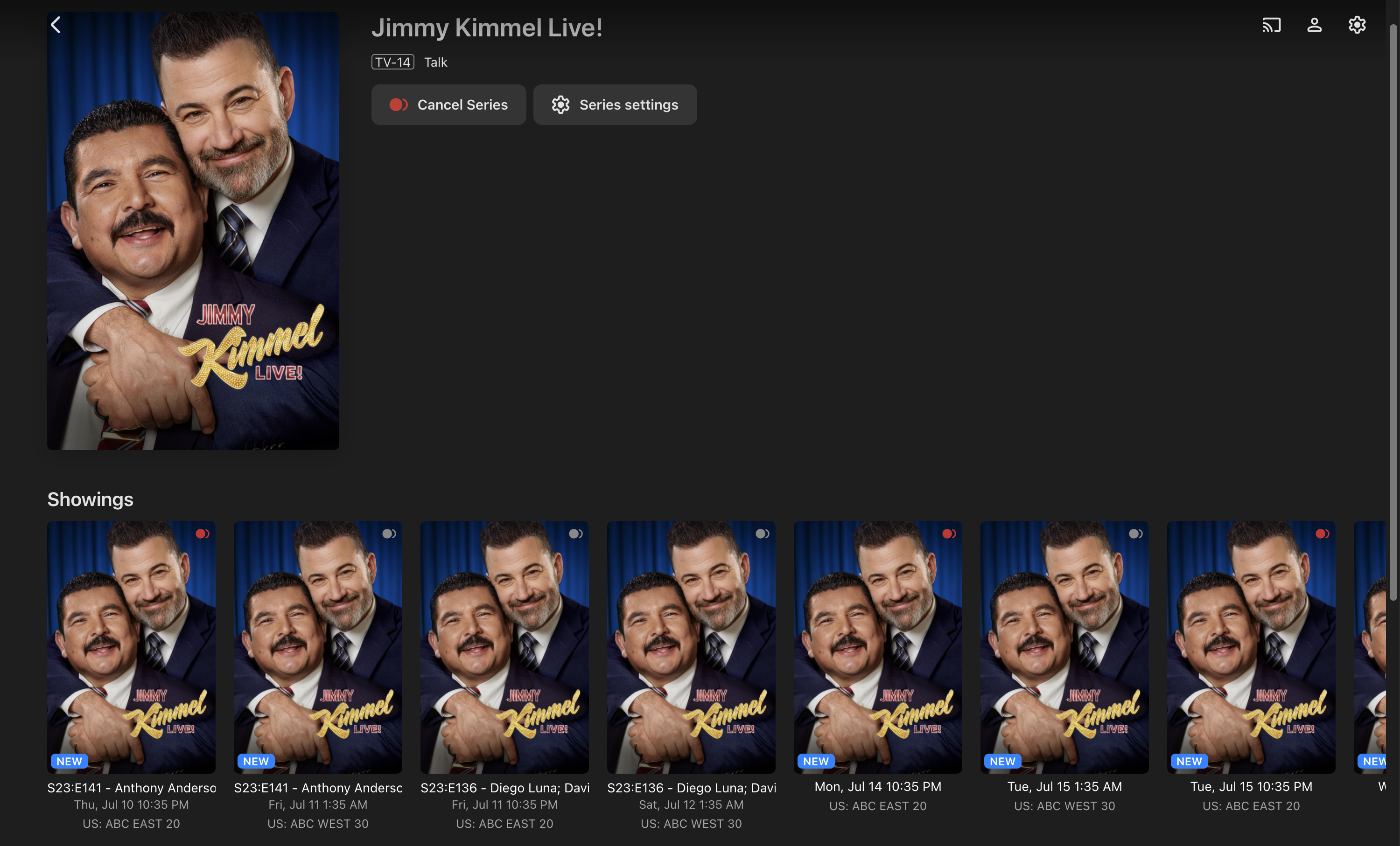 arooni 2 Posted July 11, 2025 Posted July 11, 2025 background: i deleted all my existing libraries and recreated them being careful not to have overlapping folders. Use case: record new episodes of jimmy kimmel live, set it up with new recordings. looking below it looks like it should record tonight (thursday), but doesn't plan on doing that tomorrow. yet when we look in upcoming, it doesn't seem like emby is planning on recording either the thursday/friday showing, in fact, none of the jimmy kimmel live at all. why not? attached is the log embyserver (4).txt