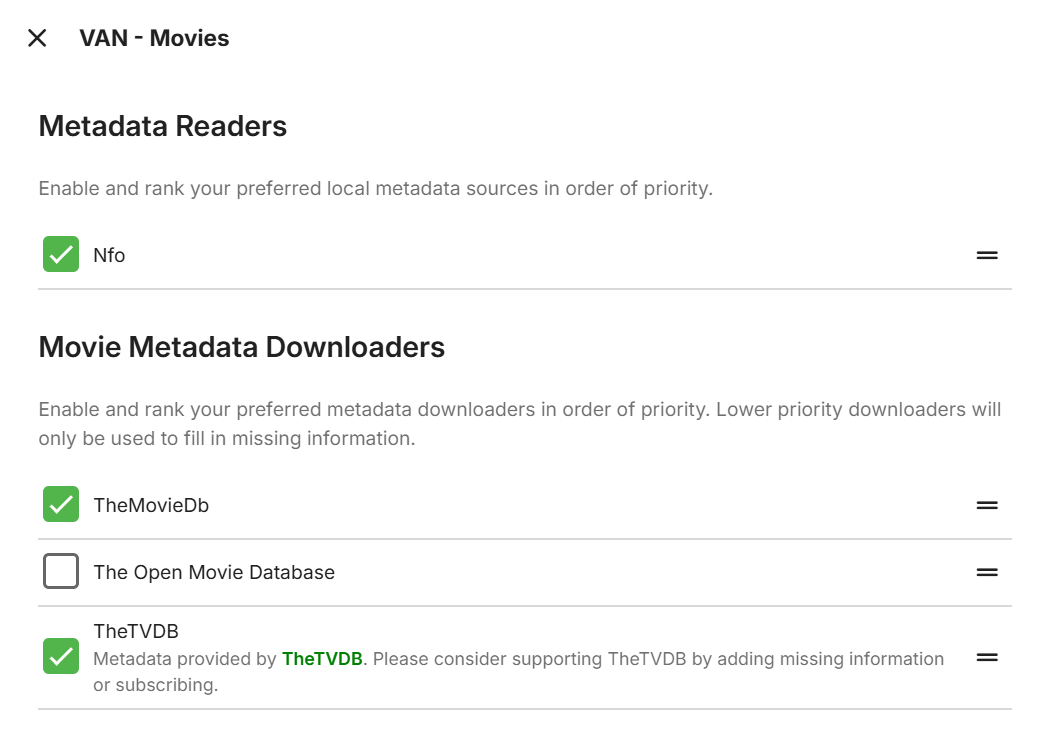 spincycle999 12 Posted July 23, 2025 Author Posted July 23, 2025 Thanks for the info. I didn't see any block. I ended up uninstalling the The Movie DB plugin, then reinstalled. It looks like that did the trick. Best wishes!