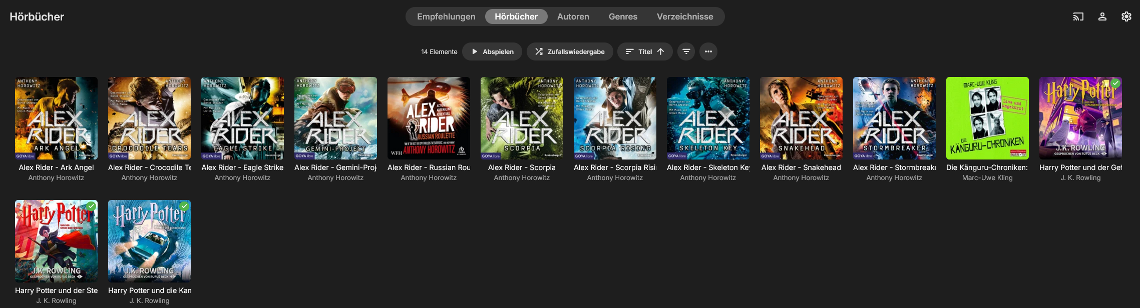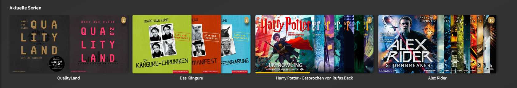 updatefreak 11 Posted July 26, 2025 Posted July 26, 2025 Hi, it would be good if series for Audiobooks could be added like in the screenshot below (e.g. for Harry Potter series etc.) and show the number of the included books (e.g. 7) In the list it should then be: recommendations, audiobooks, series, authors, genres, directories. Another feature what could be added is the remaining time for a audiobook and maybe the progress of listening, e.g. 17 h + 29 min left, which is a progress of 23 % Another thing is the metadata provider Audible.de / Audible.com and iTunes can be added (see screenshot below) This leads to an automatic fill in for Title Subtitle Authors Year Series + Number of Series Description categorie (=genre) tags teller ISBN ASIN editor language