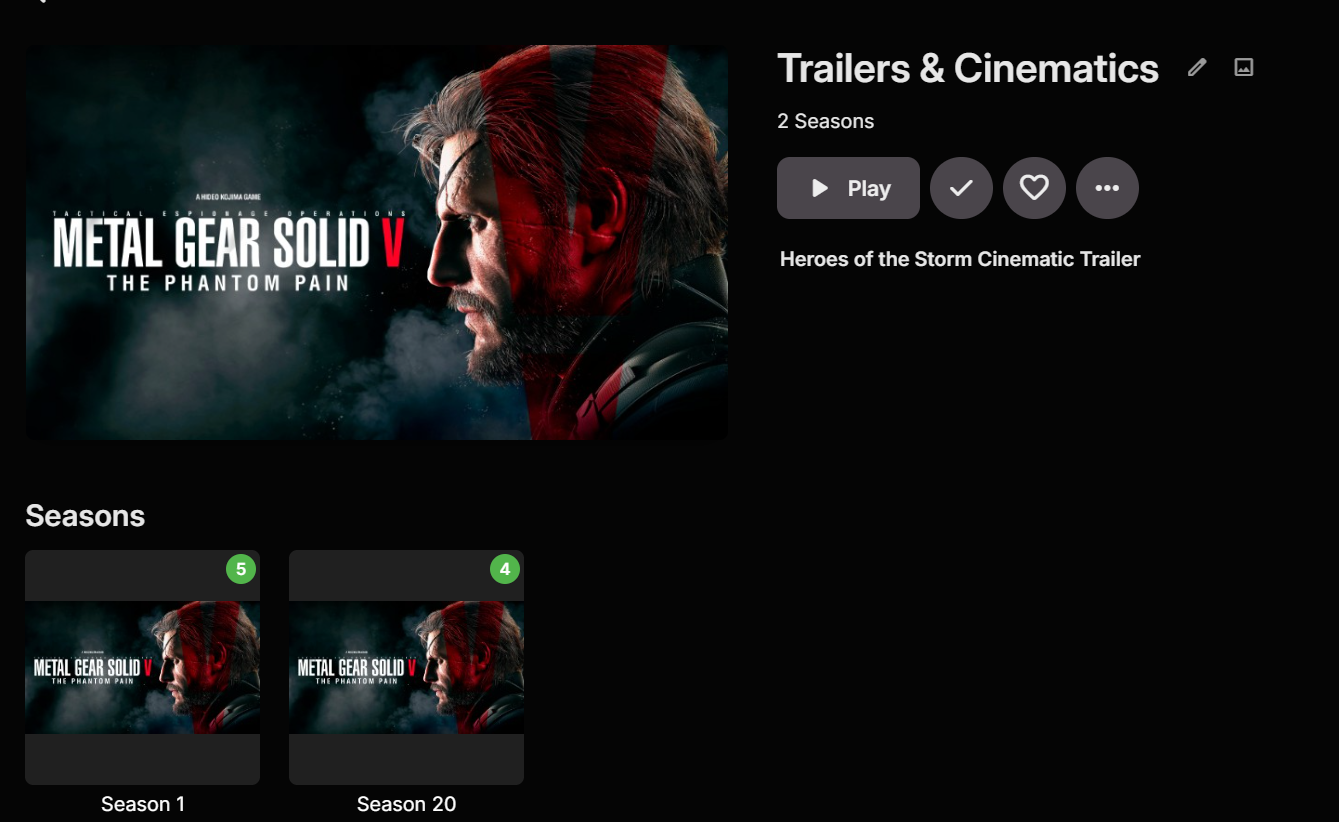 podonnell 47 Posted July 31, 2025 Author Posted July 31, 2025 14 hours ago, Luke said: We still have not seen what your file and folder naming and organization looks like so I don't feel that I can give you a great answer. So based on the limited info that I have right now, I would say that you should use home videos. What I means is, in general -- can content in a 'mixed library' be stored individually in a folder without being labeled as a series? Here are some of my content paths: \Video Games\Trailers & Cinematics\MGSV: THE PHANTOM PAIN - 2014 Trailer.mp4 \Video Games\Trailers & Cinematics\Death Stranding - Teaser Trailer - TGA 2016 - 4K.mp4 These two are placed in the same folder and presumed to be "Season 20" of "Trailers & Cinematics" Anything that is labeled without a date are put into "Season 1": \Video Games\Trailers & Cinematics\The Phantom Pain Debut Trailer.mkv \Video Games\Trailers & Cinematics\StarCraft II Heart of the Swarm Opening Cinematic.mp4 None of these have a SXEX style naming convention, yet the entire folder is being assumed as a TV Series.