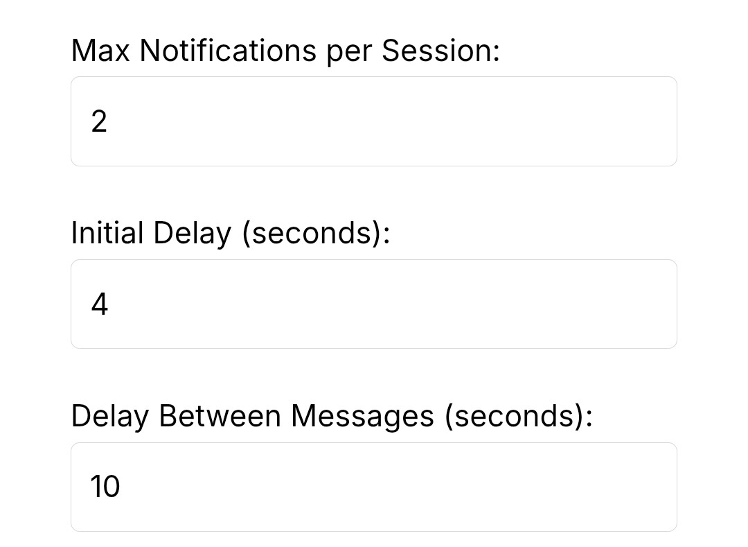 yocker 1247 Posted September 23, 2025 Author Posted September 23, 2025 2 hours ago, PeteGul said: Then I don't understand how. 1st It's how many max to send totally 2nd Delay between the messages, but they only show one time. I don't think people can change a movie within 4 seconds? 3rd Between different messages. As far as I understand, there isn't a choice to show one message twice. Sorry if I don't understand. I should change the wording on those settings, they can indeed be a little confusing. Max number of notifications is how many times it should send the message. Initial delay is how long it should take before the first message. Delay is how long of a delay between the messages.