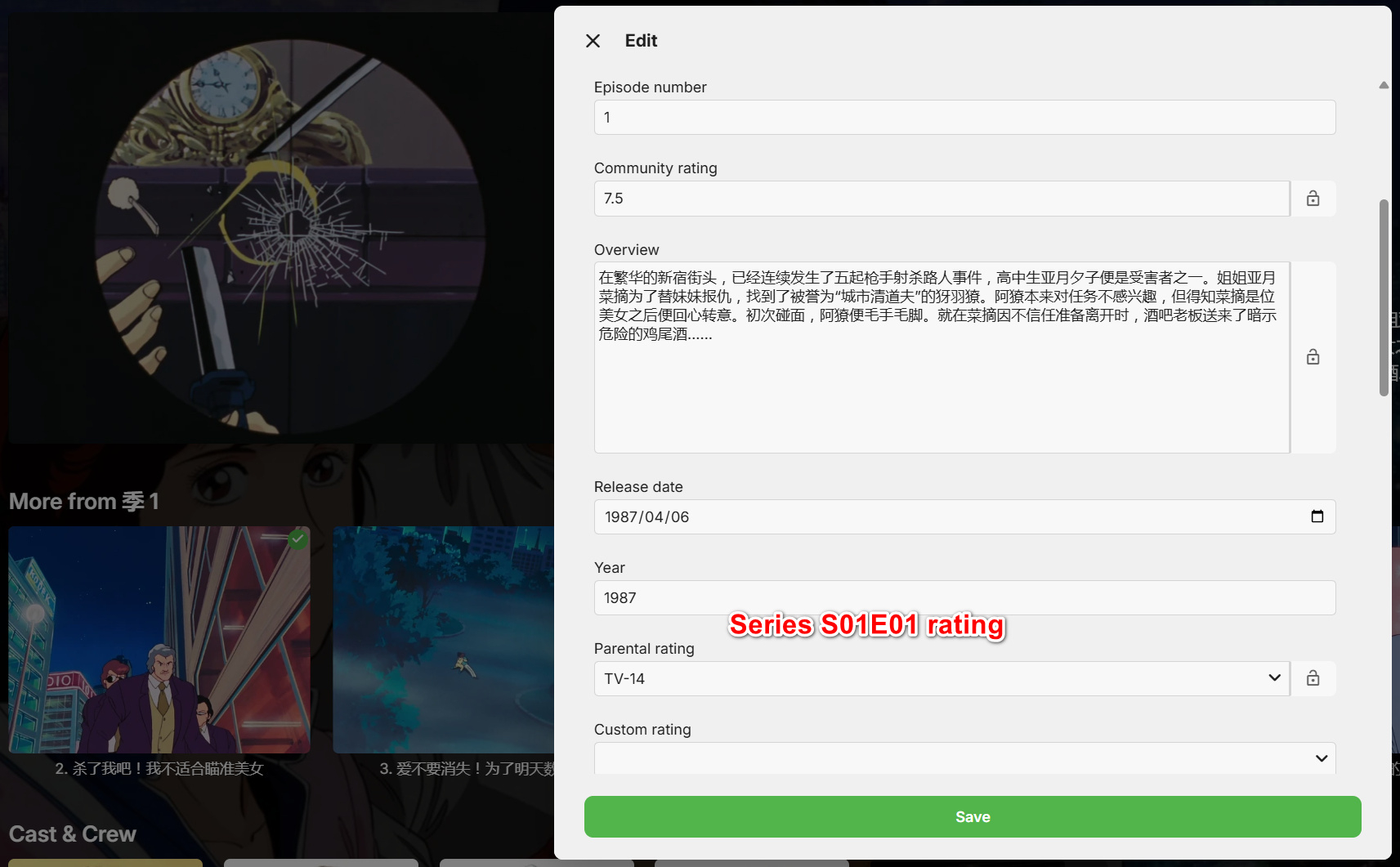 syvcxm 23 Posted August 8, 2025 Author Posted August 8, 2025 1 hour ago, Luke said: Try blanking out the rating for the episode so that it will inherit from the series. Furthermore, I think that the design of the series and episode ratings is inconsistent in the following way: Suppose there is a series as follows: set user access rating limit: [TV-14] South Park (1997) [TV-MA] - Season 01 - S01E01 [TV-14] Since the series "South Park" is rated [TV-MA], but some episodes are rated [TV-14]; If Emby prioritises respecting the series rating, so it won't display in the library view, but the series "South Park" will appear in the “Latest” section on the homepage, and episodes with [TV-14] rating will appear in search results. In that case, shouldn't the series "South Park" appear in the library view, with only episodes that meet the rating [TV-14] included? This would at least ensure consistency in visible results, avoiding the situation where a series or episodes doesn't exist in the library but can be accessed from elsewhere.
