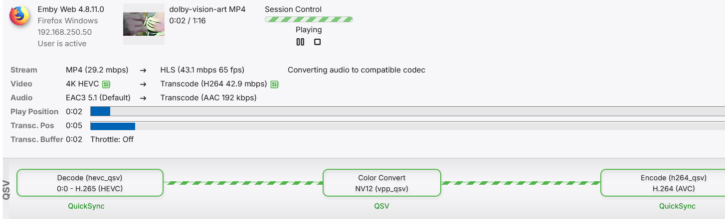 treeger8686 2 Posted August 17, 2025 Author Posted August 17, 2025 now no proble with two stream remote 15bits for two with tv lg and samsung tv at the same momen see log joint. that touch firetv firestick and firetv v 26a ffmpeg-transcode-ccc17e56-6859-4fa2-9741-c0aff8a7a1e6_1.txt ffmpeg-transcode-f0e03825-9c15-4ed0-a290-d187615c9d94_1.txt ffmpeg-transcode-e7b34390-43d0-4b38-b0cf-4a32e9badd4a_1.txt embyserver.txt