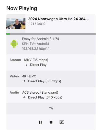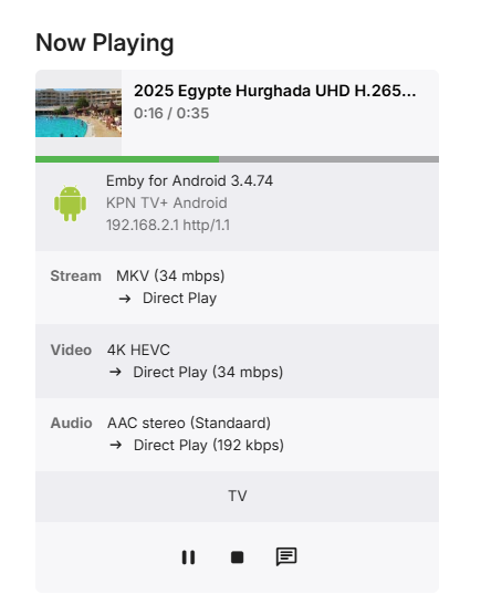 nlrobert 3 Posted August 17, 2025 Posted August 17, 2025 Just like last year, I made a vacation movie in DaVinci Resolve. It has the same codec, format, and bitrate as last year. However, Emby for Android TV can't play this file smoothly (it plays around 1 fps), while last year's version plays perfectly. I've checked all the specs and tested other formats too, like MP4 in stead of MKV. HD isn't a problem. Neither is playing the UHD version in a webbrowser. I have attached 2 screenshots of the server playing two comparable files. One plays fine, the other (the short sample) stutters at about 1 FPS. I also added the server log, but I have tested a lot of different files, so it's difficult to see what is what. How can I determine what the problem is? Thanks, Robert embyserver.txt