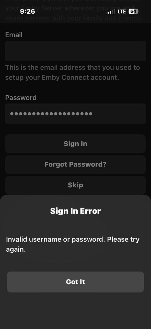 Osorus 18 Posted August 18, 2025 Posted August 18, 2025 (edited) hey all, i have new users attempting to log in with standard emby connect and getting denied saying wrong email/pw. they will use both the app and web based access to do a simple sign in. they will also change the pw and still get the same “wrong un/pw”. i had one user open a new emby connect account in front of me, verified the email, and it would not let them sign in on the app nor via web. i watched them change the pw and still no access. i have up to 4 users reporting this as the same issue. any help would be appreciated. thanks! Edited August 19, 2025 by Osorus