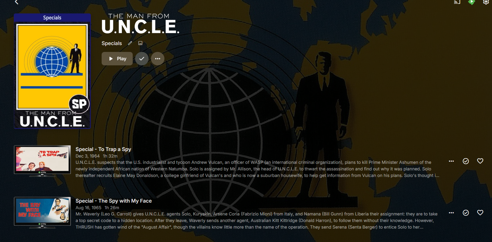 chrisrobbins1970 82 Posted August 24, 2025 Posted August 24, 2025 The Man from U.N.C.L.E., The (1964) - https://thetvdb.com/series/the-man-from-u-n-c-l-e For some reason Emby is not picking up the naming conversion for The Man From Uncle (1964) tv series correctly... This is from the webUI... As you can see each season shows only ONE episode.. Here is the naming structure I have been using for ALL my tv series; with NO issues... Now in order for the specials to get named corrected in Emby I had to do this naming structure manually ... I have removed the whole tv series folder; did a re-scan..added back in did a re-scan..same issue.. then I removed the whole folder and restarted the server; same results.. Here is an example of another tv series with the same name structure... Any idea what is going on... I am using Filebot to bulk rename tv series...