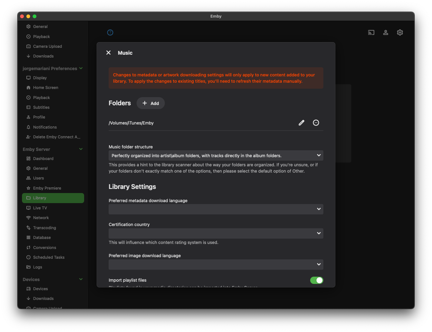 Happy2Play 9780 Posted August 26, 2025 Posted August 26, 2025 13 minutes ago, jmariani said: What I expect from Emby is to use the images embedded in the music file. Seems like a lot of redundant work if Emby had to continually read the files for the images all time. In the end it will be cached/store somewhere. And since Emby does not truly understand your provide structure it will dafault to /metadata/library since or in some cases save images to wrong locations as your set structure is not Artist/Album.