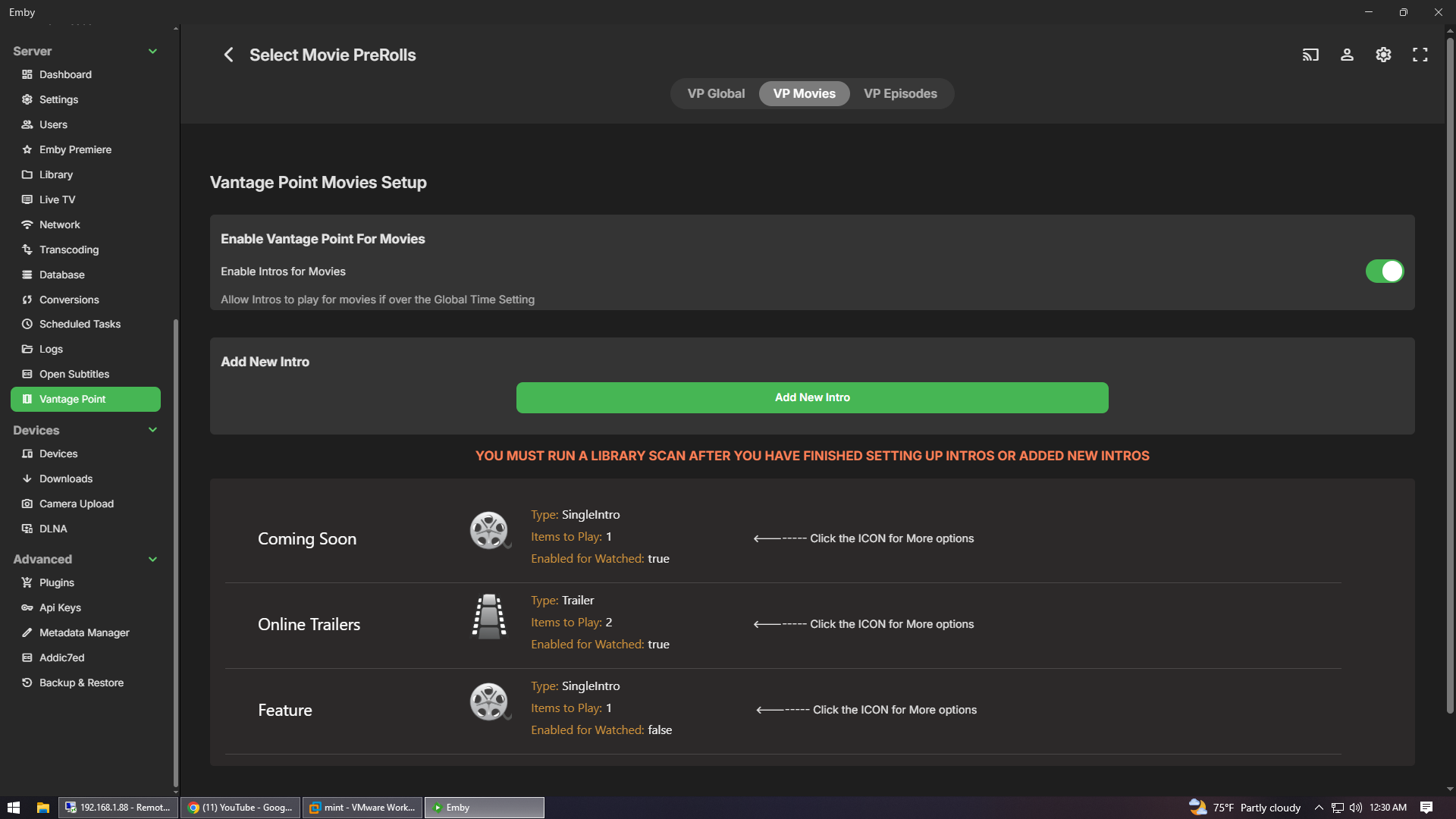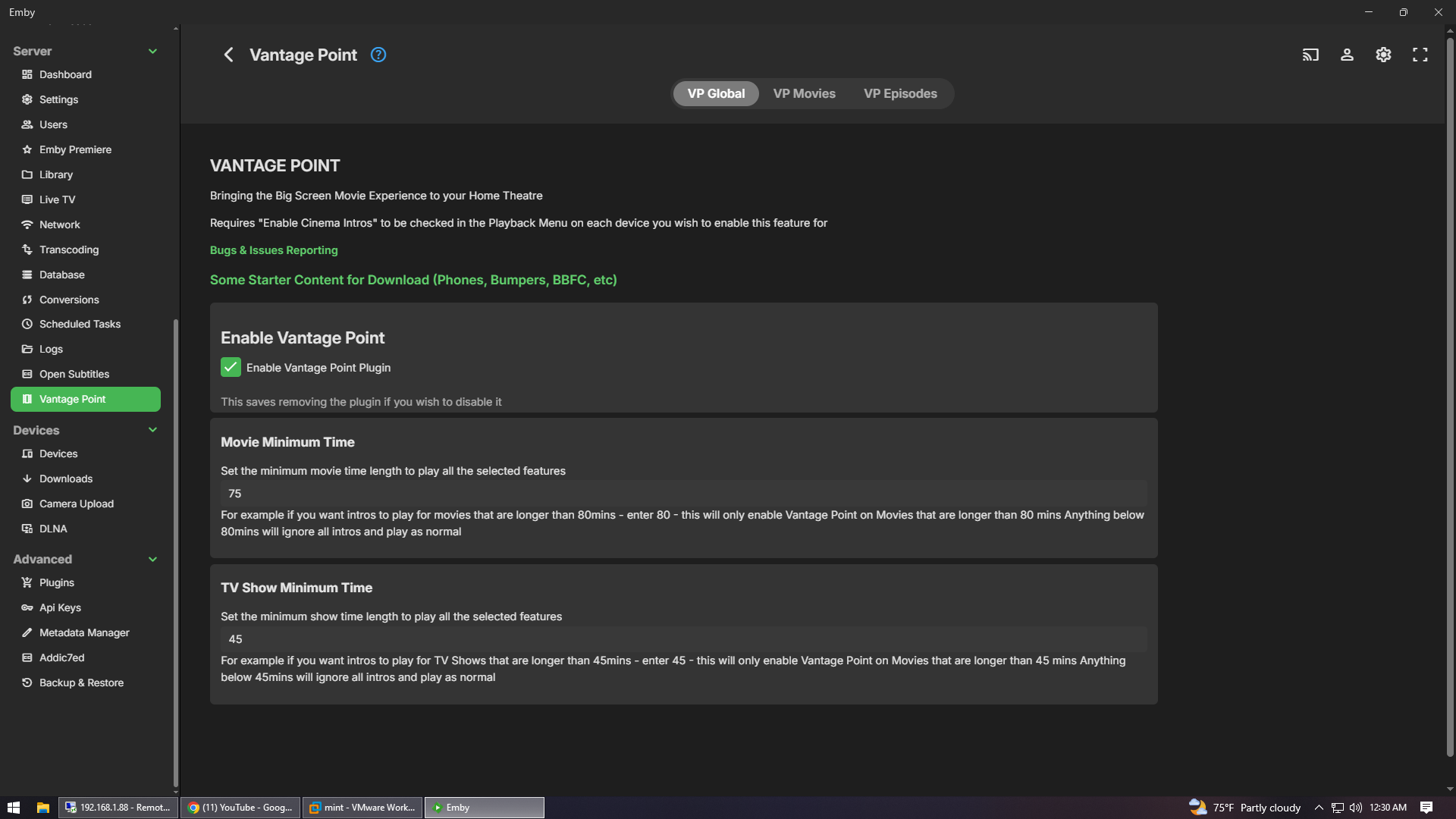 pegasuspc 1 Posted August 27, 2025 Posted August 27, 2025 I setup Vantagepoint and have it enabled, it is supposed to play my coming soon bumper, then 2 trailers, and then my feature presentation bumper but all it plays is 2 trailerss and then the movie. maybe i set it up wrong I am not sure but any help is appreciated Thanks Michael embyserver.txt