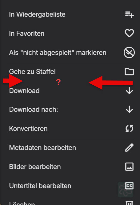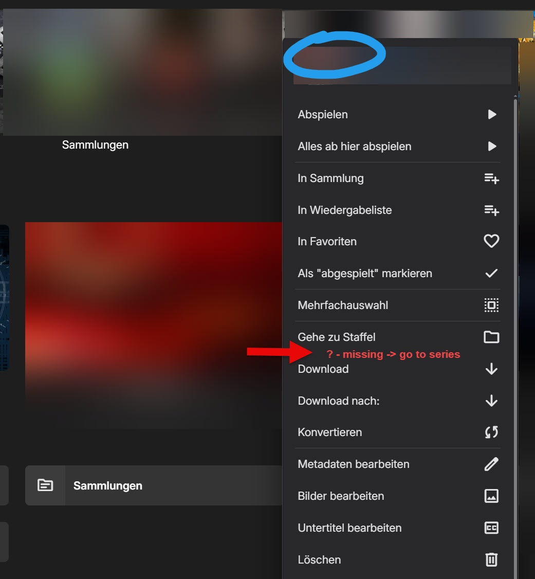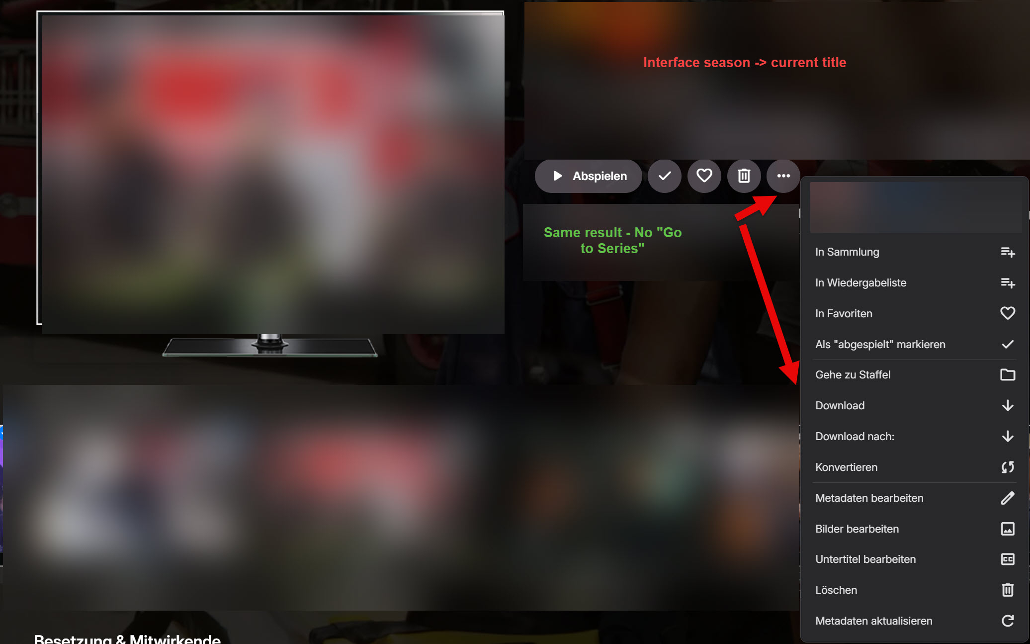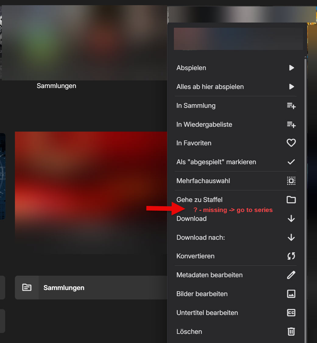 TecEmbryo 10 Posted September 14, 2025 Author Posted September 14, 2025 On 9/3/2025 at 6:42 PM, Luke said: Can you please show the entire screenshot to indicate what was clicked? Thanks. Bin mir nicht sicher, was gemeint ist. Ich klicke immer - wie im Bild angezeigt. Wie gesagt, im Android TV funktioniert es, im Browser fehlt die Zeile "Gehe zur Serie!