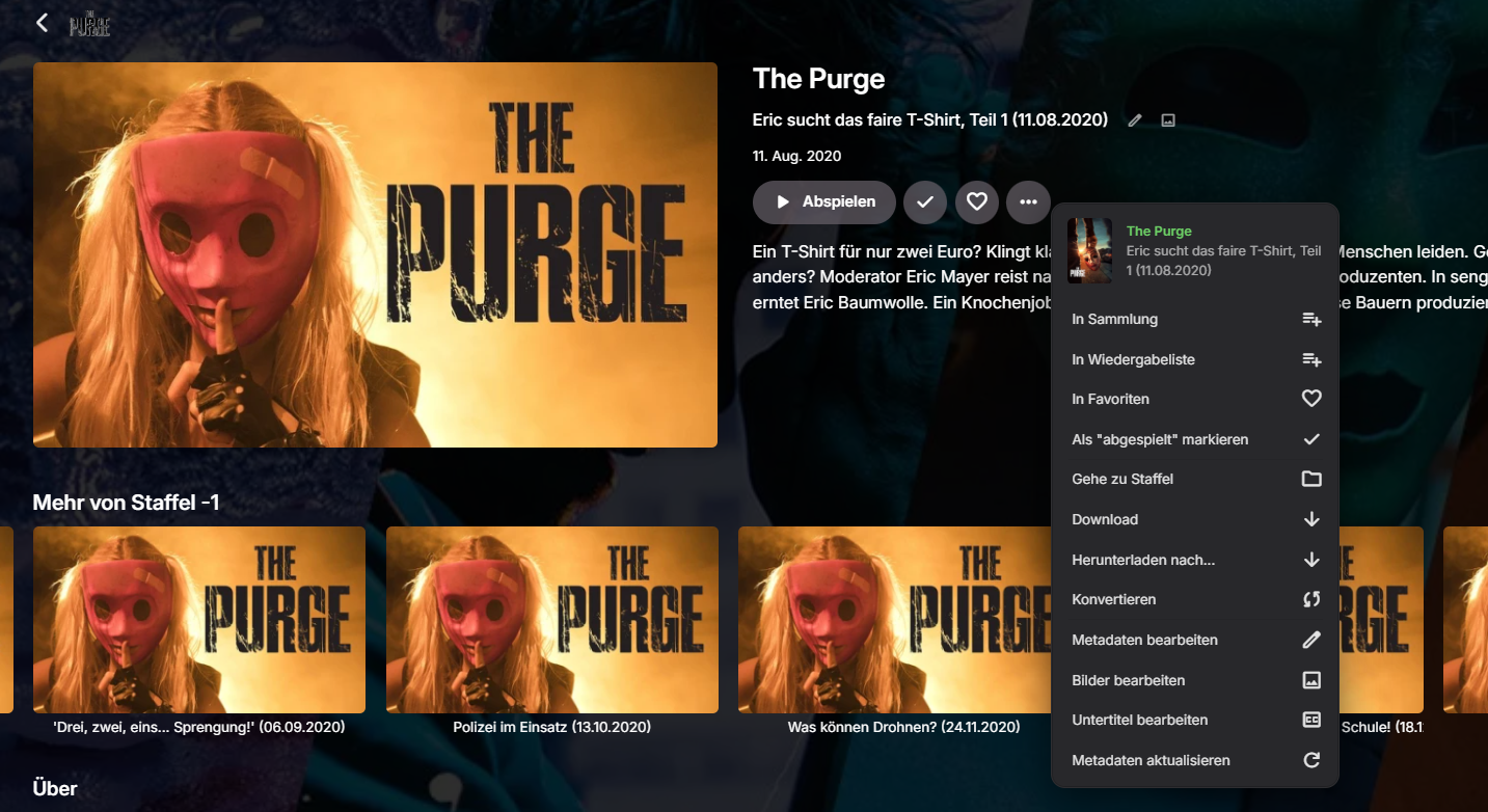 horstepipe 422 Posted October 10, 2025 Posted October 10, 2025 1 hour ago, horstepipe said: @Luke probably a little off topic, I added a german public broadcast m3u for children, there is the Show "Pur+" https://thetvdb.com/series/263753-show#seasons #EXTINF:-1 group-title="PUR+" tvg-id="693655218" tvg-name="Moderator Eric Mayer will wissen‚ wann sportliche Vergleiche zu besseren Leistungen beflügeln.<br/>From 30.09.2025 19:25" tvg-country="Germany" tvg-language="German" channel-id="KiKA",Wer ist schneller‚ schlauer‚ schöner? (30.09.2025) Emby assigns it to "The Purge" The Purge - TheTVDB.com so @softworkz I reidentified that show to Pur+, ending up with an empty Pur+ folder, all episodes are still in "The Purge" folder. I guess this is just not fully implemented yet?