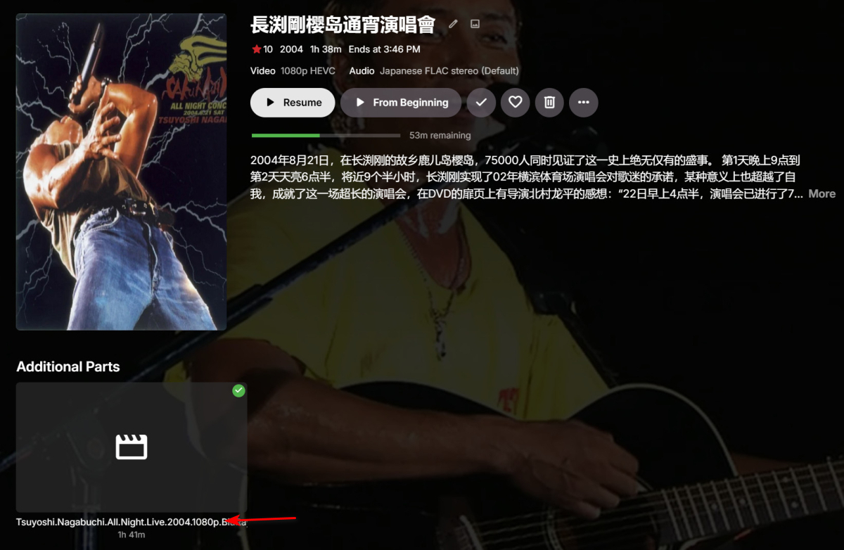 syvcxm 23 Posted September 10, 2025 Author Posted September 10, 2025 2 hours ago, Luke said: Hi, try refreshing the metadata on the main movie. Normally most of the metadata should get synced to the additional part. Thank you for your reply. I understand that the additional parts inherit metadata from the main movie. My question is: when clicking the title of an additional part, can it open a separate page like the Extra section do, rather than automatically playing? In stable version 4.8, I recall that clicking the title opened a separate page instead of triggering autoplay. Or could we make it an “optional setting” so that clicking the title doesn't trigger autoplay?