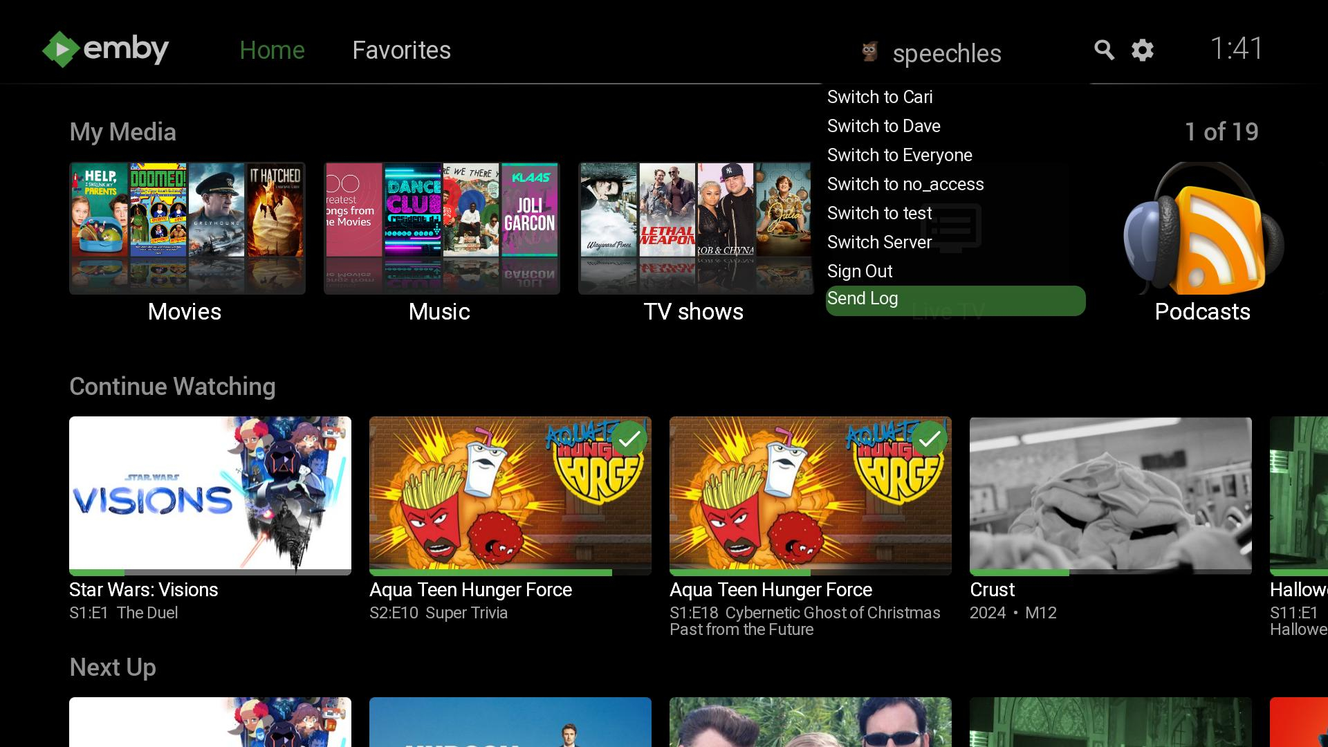 speechles 2055 Posted September 20, 2025 Posted September 20, 2025 (edited) The logs you posted in this thread in the ODT format do not have any playback attempts. It also looks like the server is still scanning things. Have you run a full library scan of everything and let it finish? Once you enable debug you have to exit the app and restart it. The app must start in a debug state fresh. Once you do this you recreate the problem then go back to the homescreen and navigate up to your username at top and click. Then the menu shown above will appear. At the bottom is the Send Logs option. The Roku is poor at subtitle support. No graphical subtitle support is available. All graphical subtitles must be burned into the video stream. The Roku only supports text subtitles with no fonts/formatting/adjustments. At this time we only support what Roku does or we suggest you burn the ASS/SSA subtitles into the video using the option found in the Roku app settings. We do not have a custom subtitle parser in the app at this time. Make sure to disable the debug option in the app once you have sent the logs. There are numerous messages saved into the Roku on-device-log when you enable this and if you navigate around quickly it may bog down the Roku and cause slowdowns for you. Only leave the debug option enabled while you are attempting to recreate the issue and send us logs. Thanks. Edited September 20, 2025 by speechles