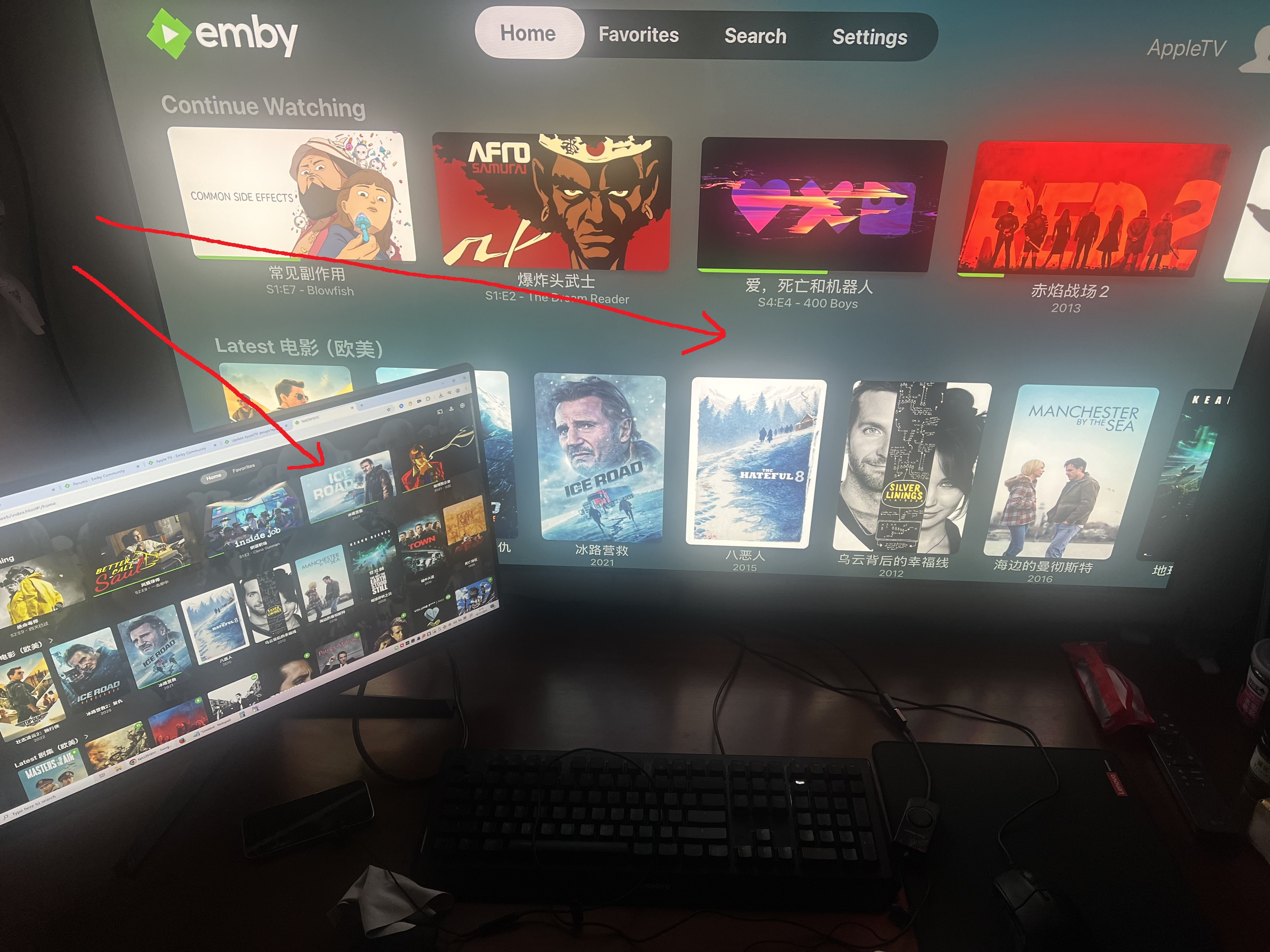 NAS288 11 Posted September 16, 2025 Author Posted September 16, 2025 15 minutes ago, Luke said: Right I was just pointing out that the only way to do it on Apple TV would be to match what we do in other apps in TV mode - on selection. There's no need for a display mode switch on Apple TV because it is a TV-only device. Yes, I understand and agree with what you said. I’ve tried the LG WebOS Emby app and the Android TV Emby app, and they can be set to use the selected movie’s backdrop image. However, the Apple TV app doesn’t have any option to change this single blurred gray background. That’s exactly what I meant — I would like to have a backdrop option on Apple TV to make the interface look nicer. Or did I misunderstand your point, and it’s actually not possible to implement this feature on the Apple tvOS app?
