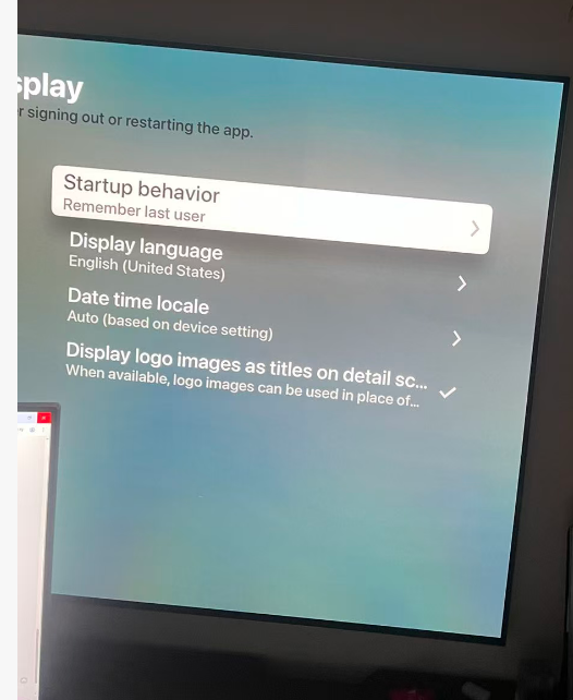 NAS288 11 Posted September 16, 2025 Author Posted September 16, 2025 2 hours ago, Luke said: Hi, I’m TV display mode the web app doesn’t do this randomly. It does it based on what is currently selected. Thank you for your reply. On my Apple TV app, there is no “currently selected” background image and no “random” background image either. There is also no display mode switch option (like Windows where you can switch to TV display mode). It only shows a single blurred gray background, and it is unchangeable. In addition, there are no settings for background display like on Windows (randomly), browser (randomly), LG webOS (selected), or Android TV (selected). 1