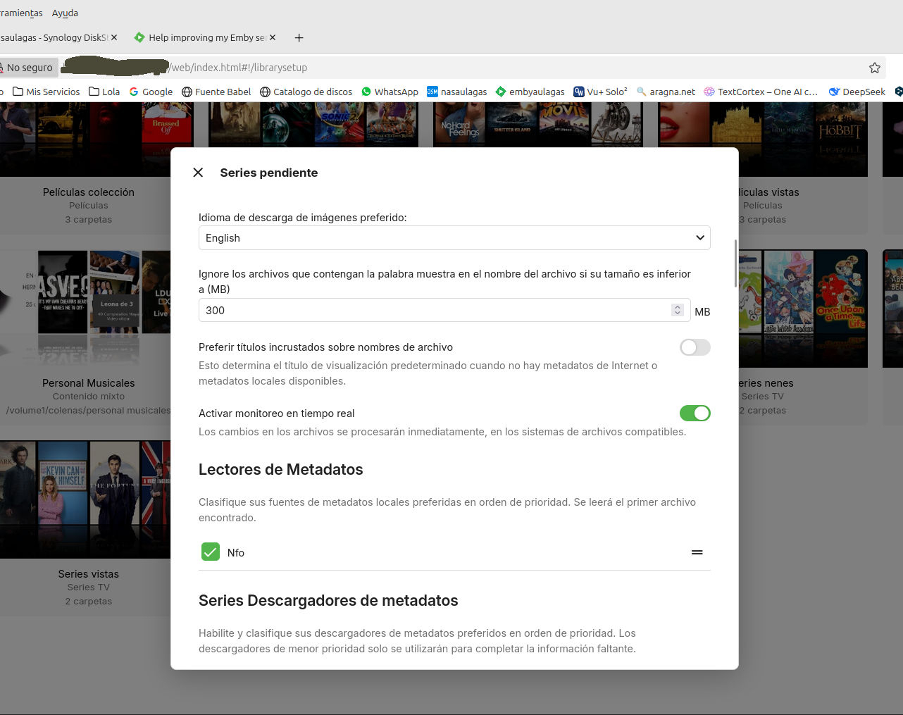 Luke 42077 Posted September 22, 2025 Posted September 22, 2025 Well the realtime monitor did pick up some changes: 2025-09-18 17:42:28.065 Info LibraryMonitor: peliculas pendiente (/volume1/medianas/peliculas pendiente) will be refreshed.