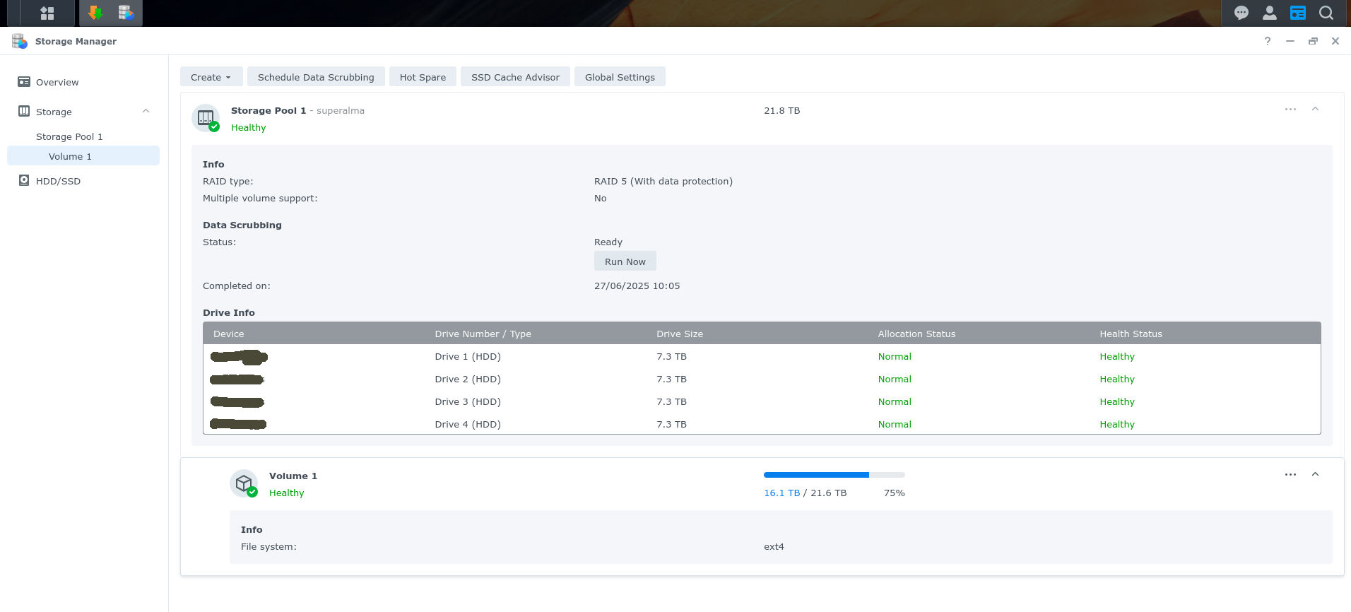 pgell 4 Posted September 17, 2025 Posted September 17, 2025 I have an Emby server on a Synology DS918+ NAS with a capacity of 21.6 TB. To date, it manages 62,270 files, including movies, series, and music, which occupy 14.73 TB. The server is used by about 30 users. I have an opportunity to upgrade my hardware, and I have some doubts. In principle, I am quite happy with my current setup. However, I suffer from one issue that I want to see if I can solve with a better NAS. The problem is that, for about a year now, some of my libraries do not update automatically. When I add content to their folders, it doesn't become available on the server after a few minutes. It is essential to force a library scan. This does not happen with the other libraries. The main difference between them is that the ones that fail have a more complex folder structure and a much larger number of files (Series, Music...). I ended up assuming it's a lack of device resources. Now that I have the chance to change my NAS, I want to not only increase storage but also boost its power, and I've come across a couple of aspects I don't like about Synology. My current NAS has a Celeron processor and 8GB of RAM. The best I can aspire to with this brand is a Ryzen V1500B, and I'm not sure if that represents a significant leap in capability. But what I like the least is that Synology has established a compatibility policy for the drives that can be installed, determining that only their brand's drives are compatible. I currently have 4 Western Digital 8 TB drives, and I don't know if this Synology policy will mean I can't use them in the new one or if it will result in a loss of warranty or support from the brand. I'm finding NAS devices from other brands like Terramaster or Qnap that mount Intel i5 or even i7 processors in some of their products, which would mean an undoubted power increase. However, with these other brands, I have doubts about the compatibility and ease of maintenance for the Emby server. If anyone has experience with any of these issues, I would greatly appreciate your comments. (AI Translation from this text: Tengo un servidor emby en un NAS Synology DS918+ con una capacidad de 21,6 TB. A dia de hoy, maneja 62270 archivos, entre peliculas series y musica, que ocupan 14,73 TB. El servidor lo utilizan unos 30 usuarios. Se me presenta una oportunidad de mejorar mi hardware y tengo algunas dudas. En principio, estoy bastante contento con mi equipo. Pero sufro un inconveniente que quiero ver si puedo resolver con un NAS mejor. El problema es que, desde hace 1 año, algunas de las bibliotecas no se actualizan automaticamente. Cuando añado contenido a sus carpetas, no aparecen disponibles en el servidor a los pocos minutos. Es imprescindible forzar el escaneo de la biblioteca. En el resto de las bibliotecas esto no sucede. La diferencia principal entre unas y otras es que, en las que falla, el arbol de carpetas que la componen es mas complejo y tienen un numero mucho mayor de archivos (Series, música...). Acabé suponiendo que es falta de recursos del dispositivo. Ahora que tengo oportunidad de cambiar mi NAS quiero, ademas de aumentar el almacenamiento, incrementar tambien su potencia y me encuentro con un par de aspectos que no me gustan de Synology. Mi NAS actual dispone de un procesador Celeron y 8GB de RAM. Lo máximo a lo que puedo aspirar en esta marca es a un Ryzen V1500B, que no se si supone un salto importante de capacidad. Pero, lo que menos me gusta, es que Synology ha establecido una politica de compatibilidad de los discos que se pueden incluir por la cual determina que solo los de su marca son compatible. Actualmente tengo 4 discos Western Digital de 8 TB cada uno y no se si esta politica de Synology va a determinar que no pueda usarlos en el nuevo o que me suponga una perdida de garantia o capacidad de soporte por parte de la marca. Me encuentro dispositivos NAS de otras marcas como Terramaster o Qnap que montal intel i5 o, incluso, i7 en algunos de sus productos, lo que supone un incremento de potencia indudable, aunque con estas otras marcas se me plantea la duda de la compatibilidad y facilidad de mantenimiento del servidor emby. Si alguien tubiera experiencia en algunos de estos temas agradecería enormemente sus comentarios.)
