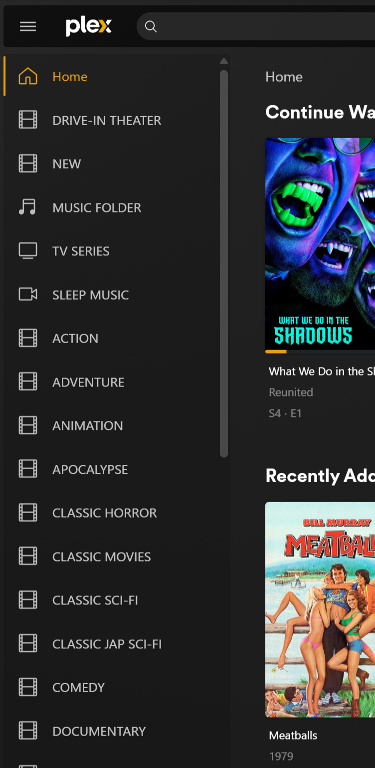 ProshowXLV 1 Posted September 23, 2025 Posted September 23, 2025 Hello to the EMBY crew. After many years of supporting PLEX, I finally came to the realization they have entered into a CRACKER BARREL moment of ignoring their users with a horrific UI update, and have shown no interest in users cries of distaste. So, I began to look ay options and settled on EMBY and bought the Premium option. So far, really loving it on my PC, but having some issues with the ROKU UI. The main disaster PLEX created, was moving a very intuitive SIDE MENU with vertical navigation, to a terrible horizontal scrolling NAV for libraries, which is a huge pain in the ass. I like that EMBY has a nice vertical side menu for libraries in the PC UI, but uses a horizontal scrolling NAV for libraries on the ROKU UI. Now, if there is a way to option for a side menu design, I haven't found it. I realize I just got here, and don't want to start my experience with a complaint, but with a bit of a heads up in the fact that there are A LOT of disallusioned PLEX users looking for a new home. So call this a FEATURE REQUEST for your ROKU UI. It includes 2 options that would most certainly prompt an exodus of pissed off PLEX users to your platform. This has to do primarily with the UI on ROKU, and any of the other streaming platforms. 1. Vertical Side Menu for Libraries (as in your PC UI) (Attached) 2. A "grid" layout option for MAIN LIBRARY FOLDERS, like you have for invidual library layouts such as the "MOVIES" layout. These two things are the primary options that would induce other "PLEX REFUGEES" to come running. Just sayin. Have a great day! ProshowXLV Las Vegas, Nevada