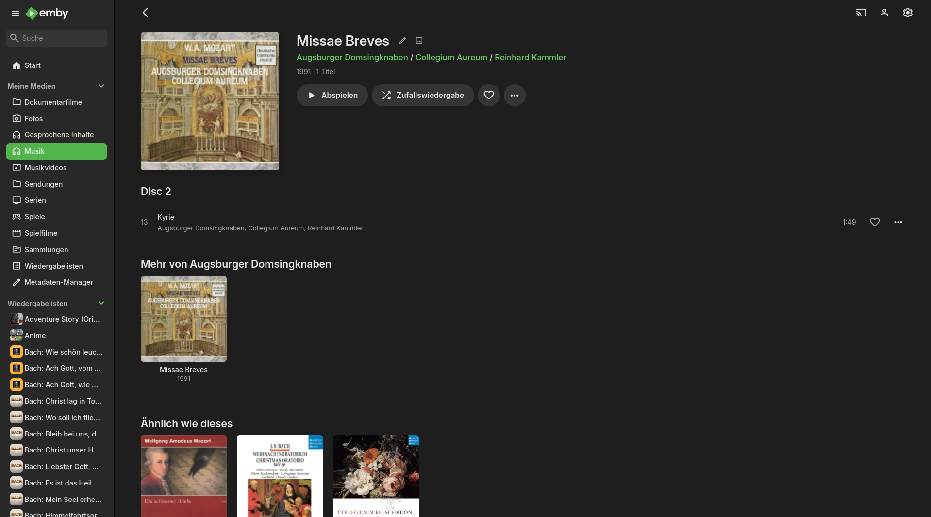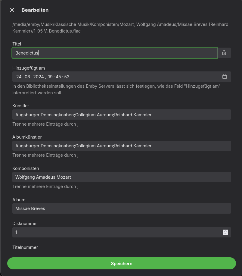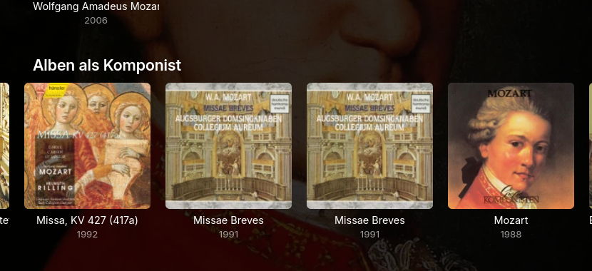 goblin2k3 6 Posted October 2, 2025 Author Posted October 2, 2025 Your assumptions are all correct. Quote Even though you don't have MusicBrainz embedded metadata, Emby may still be fetching info from MusicBrainz directly if you have MusicBrainz turned on as a metadata provider within your Emby music library? MusicBrainz is activated as a metadata provider for artists. It is not activated for songs or albums. Same goes for TheAudioDB and Discogs. Quote Even though you don't have MusicBrainz embedded metadata, Emby may still be fetching info from MusicBrainz directly if you have MusicBrainz turned on as a metadata provider within your Emby music library? I have selected the third option (tracks in album folders). This only applies for subfolders, though, as album folders are grouped in folders for genres, composers, artists etc. Quote If you have both AlbumArtist and a "hidden" Album Artist tag then the "hidden" tag could cause issues. You may be able to check this with your tagging program? (in Mp3tag for example - use View>Extended Tags). I cannot see any hidden metadata or differences between the metadata.