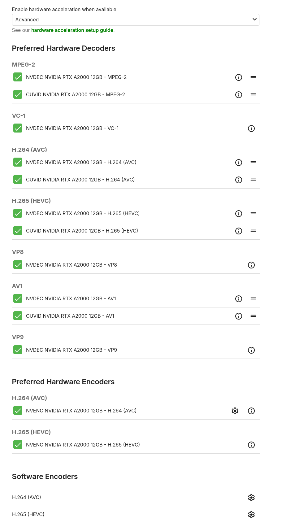 Luke 42077 Posted January 4 Posted January 4 On 1/1/2026 at 4:39 PM, McGaureth said: Hi guys, Happy new year. I'm having the same issue. When I run: lspci -nn |grep -Ei 'VGA|DISPLAY' It's showing: 01:00.0 VGA compatible controller [0300]: Intel Corporation Battlemage G21 [Intel Graphics] [8086:e212] I'm running Emby directly (not via Docker) on Ubuntu 25.10, with my B50 Pro passed through on Proxmox with Kernel 6.17.0-8-generic. I've installed the drivers via: https://dgpu-docs.intel.com/driver/client/overview.html#ubuntu-latest I am unable to get Emby to recognise the GPU. Issue via log: "Devices": [ { "DeviceIndex": 0, "DeviceInfo": { "VendorName": "Intel Corporation", "DeviceName": "Battlemage G21 [Arc Pro B50]", "SubsytemVendorName": "Intel Corporation", "VendorId": 32902, "DeviceId": 57874, "SubsytemVendorId": 32902, "SubsytemDeviceId": 4372, "DevPath": "/sys/bus/pci/devices/0000:01:00.0", "DrmCard": "/dev/dri/card0", "DrmRender": "/dev/dri/renderD128", "IsEnabled": 1, "IsBootVga": 1, "Error": { "Number": 18, "Message": "Failed to initialize VA /dev/dri/renderD128. Error 18" } } } ], "Log": [ { "Level": 40, "Category": 0, "Message": "Found 26 device entries" } ] } I'm lost as to what I need to do in order for it to work. When I click 'advanced' I'm not getting the same results as the screenshots above. @Lukeapologies, but I am unsure where the driver you mentioned it located? Any help would be much appreciated. Many thanks Hi, I mean the driver is embedded into the server package, on most platforms at least. Does this help?