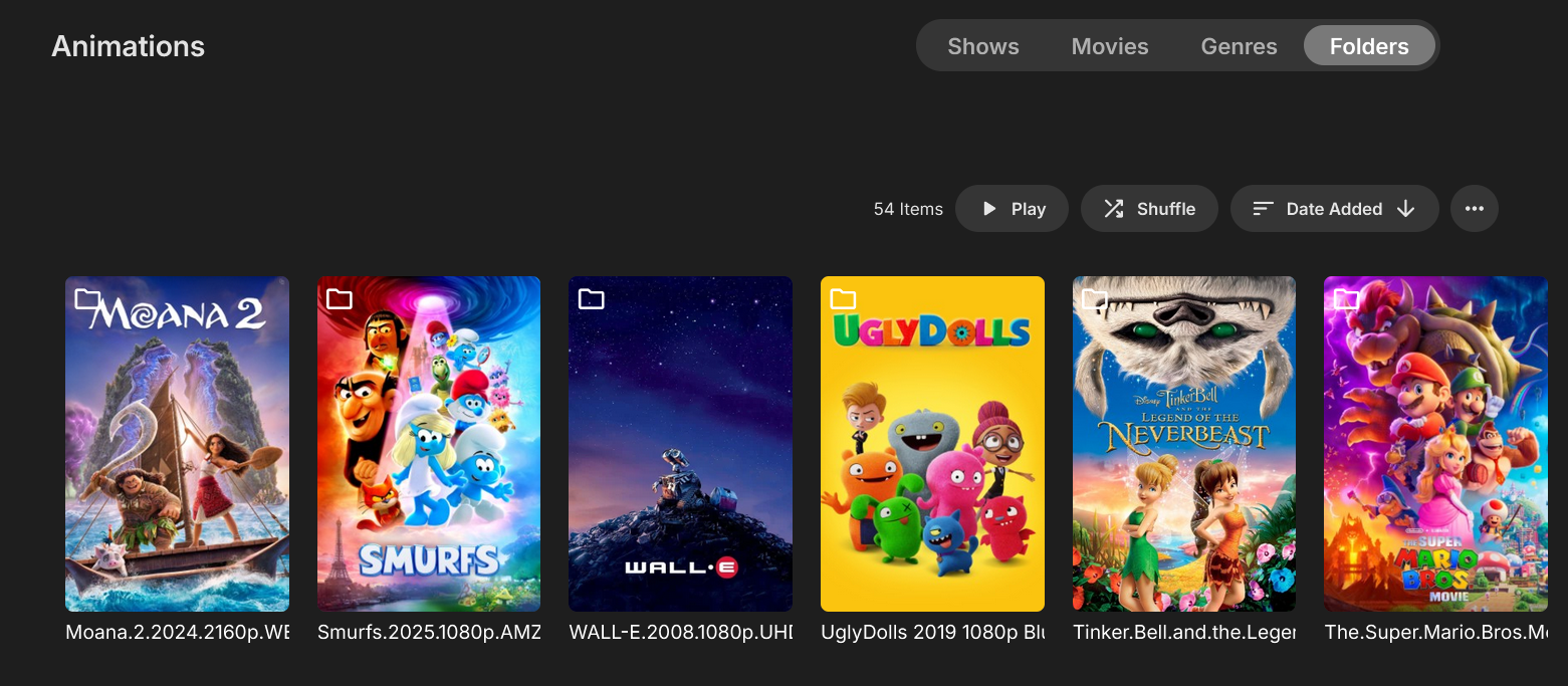 spard4 12 Posted October 3, 2025 Posted October 3, 2025 The "auto jump through single item folders" option does help. To fully solve my issue, I would need to remove all movies from their collections, and instead place the folders containing the movies inside the collections. Given the size of my libraries, that would be a huge amount of work, but I think I’ll do it this way. Merging the Movies and Shows tabs would also help, but you’ve recently added a new feature that will be a big help with my organization: the ability to group items into collections inside folders. This allows for much cleaner and more advanced sorting methods than simply using the Movies and Shows tabs.