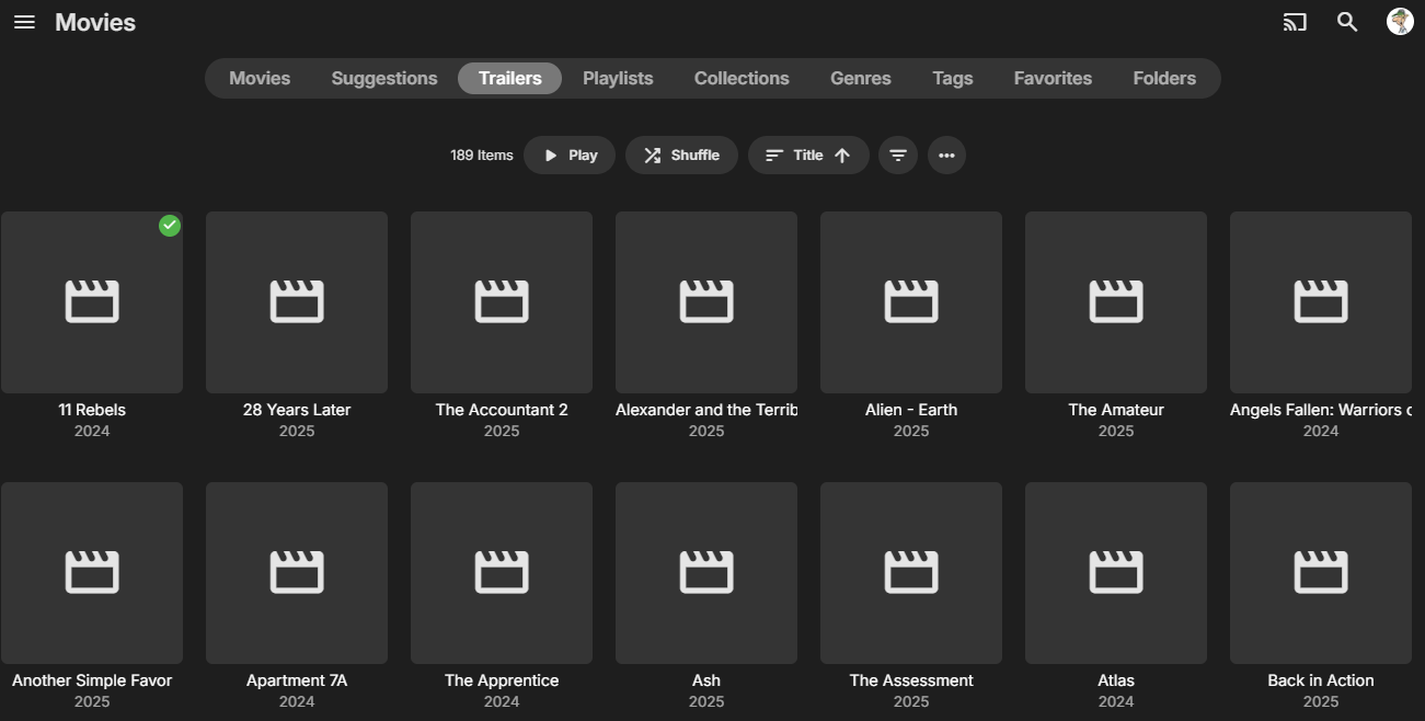 gihayes 47 Posted October 2, 2025 Posted October 2, 2025 (edited) I have a pretty large library so after the update it was scanning from 11:59 on the 30th when the update was installed until I restarted a few hours ago. All seems fine except for the trailers. They have no posters, only blank placeholders, and they won't play from the windows app or the android app on my phone. They play fine from a browser tho'. Also the Vantage Point plugin skips over them. Update: Trailers won't play on my phone using Edge, but play using chrome. Edited October 2, 2025 by gihayes Update