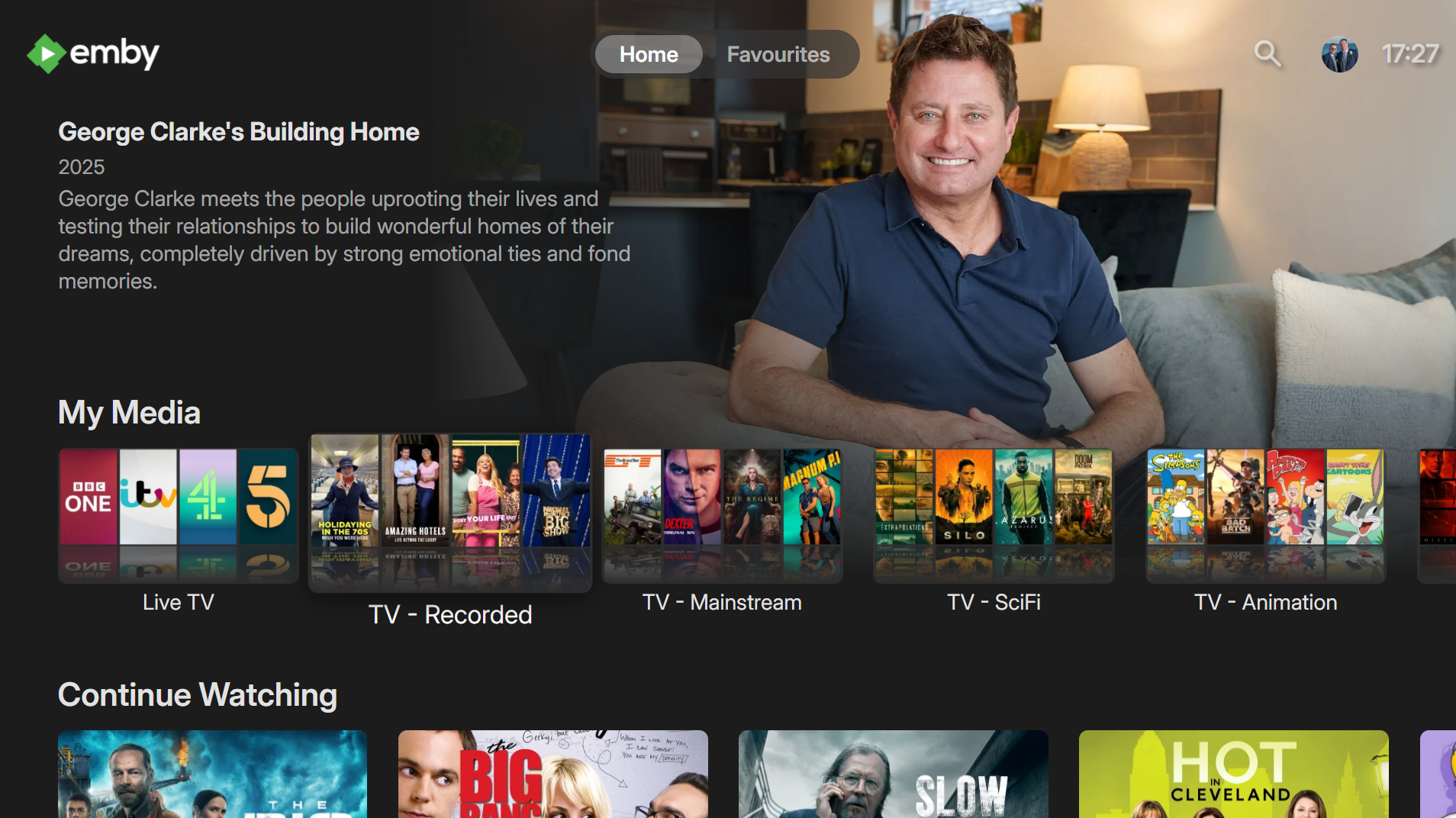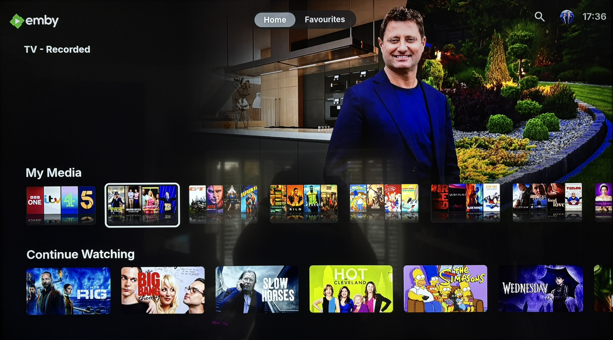 I still have an older version of the client on one of my other android devices, it is still showing the behaviour my other devices were displaying with the same configuration options.  In the images below, version 3.4.74 is how it has appeared in every version until the most recent update(s).  The 3.5.11 images are how it appears as of about 2 days ago when two of my devices auto updated.  In the 3.4.74 images the text label of the library name (Live TV, TV - Recorded, TV - Mainstream, etc) appears under the icon in the My Media row, and a full media item's details are show at the top of the screen when a library is highlighted.   In the more recent one the text is no longer shown under the library image and the name of the highlighted library is now shown at the top of the screen with a random media backdrop shown, but no media details displayed.