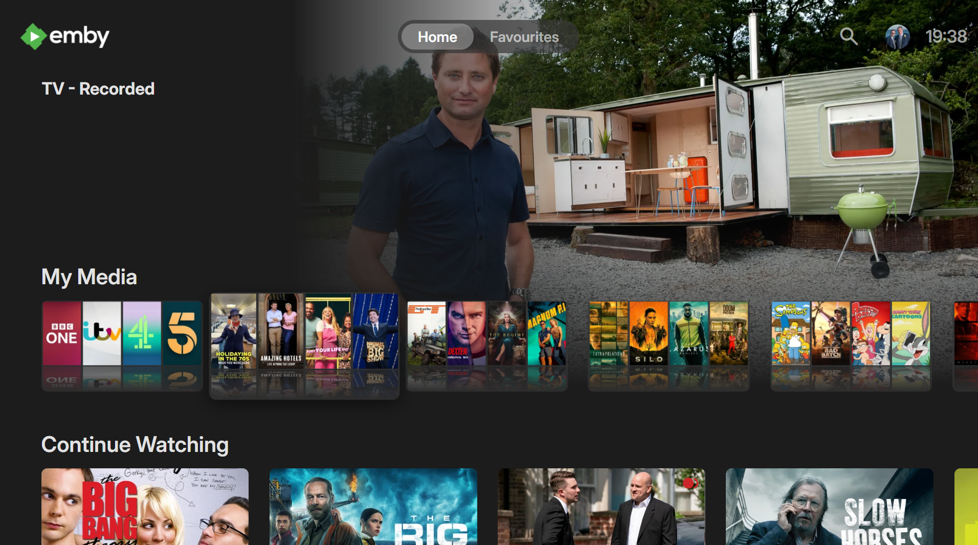 If you use the Android app with the detailed preview option in home screen settings turned off, or the Web app, or Emby Theatre the My Media items are displayed with their text underneath.  However with the detailed preview option in the Android app, the text is no longer displayed under each icon, but it is displayed at the top of the detailed preview information.