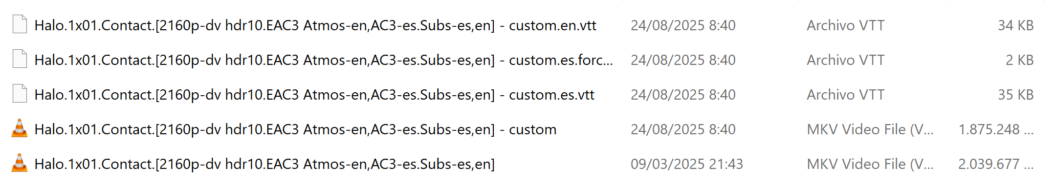 victor_es 1 Posted December 16, 2025 Author Posted December 16, 2025 (edited) Buenas noches, llevo un tiempo sin entrar porque me salio defecutosa la placa base, he puesto otra placa y restaurado el emby. Y a tu pregunta, sip, creo que si, luego le pregunte a mi tio que se le pausaba, y parece que va algo mejor.(el si no estoy seguro, pero me dijo que iba algo mejor) Y ahora otra pregunta, tengo varios capitulos que se repiten por ejemplo; mkv original: Juego de tronos_S03E02_Alas negras, palabras negras mkv repetido: Juego de tronos_S03E02_Alas negras, palabras negras - custom Juego de tronos_S03E02_Alas negras, palabras negras - custom.es.vtt ¿Porqué se repite? Y que debo hacer para solucionarlo? Edited December 16, 2025 by victor_es