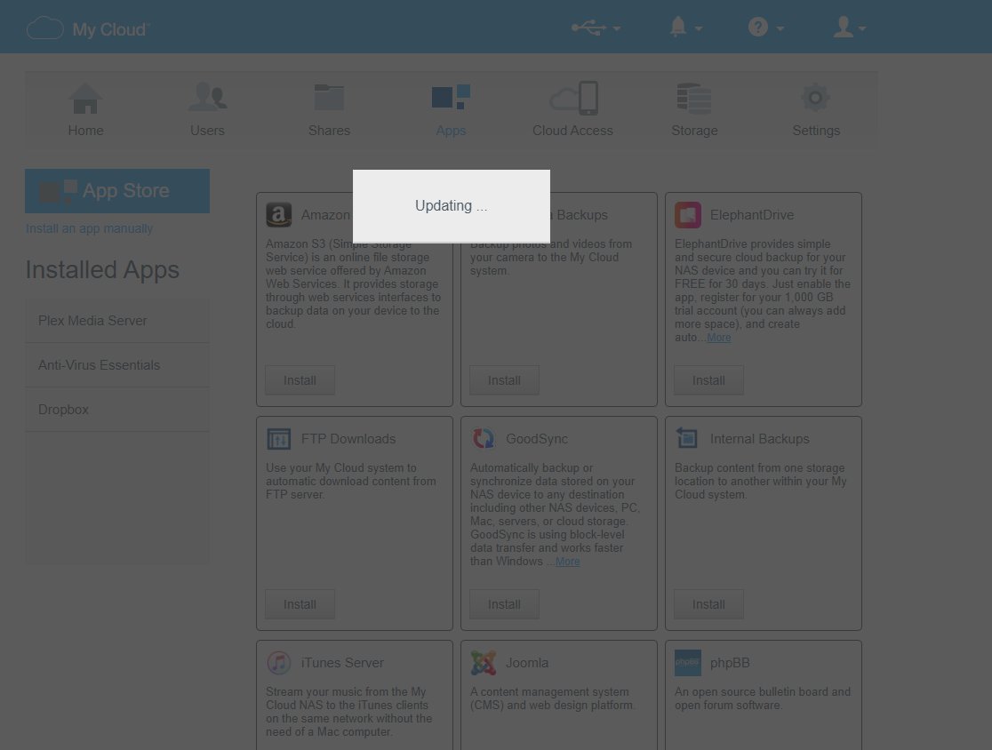 noinch 2 Posted October 9, 2025 Posted October 9, 2025 Hi. Trying to install EMBY Server (most recent release) on my EX2 Ultra (latest firmware, 5.31.108). I start the process, and all I get is a box that says Updating. It eventually times out and returns me to the login page. Have tried: emby-server-western_digital_ex2_ultra_os5_4.9.1.80_arm.bin emby-server-western_digital_ex2_ultra_os5_4.9.1.36_arm.bin emby-server-western_digital_ex2_ultra_os5_4.7.14.0_arm.bin Have restarted the EX2 Ultra. Is there something I'm missing? Thanks!
