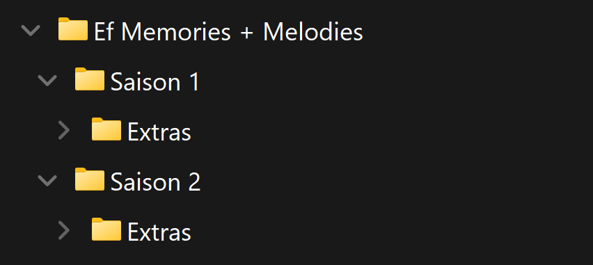 Jeanlieuma 0 Posted October 11, 2025 Author Posted October 11, 2025 Inside the extras folder? It's kind of chaotic. There are also pictures of the booklet, Blu-ray audio menus, etc. That's why the "extras folders" were usefull with jellyfin. You didn't have to bother; just dump everything there and forget about it. If it's not possible to reproduce that, I wouldn't mind hiding them entirely. I just don't want them to appear with the episodes or special episodes (like OVA). I guess I could .RAR these folders, but I'd have to do the same for a few hundred folders. If I can avoid it, that would be great. 1 hour ago, Luke said: Hi there, how are your files named and organized?