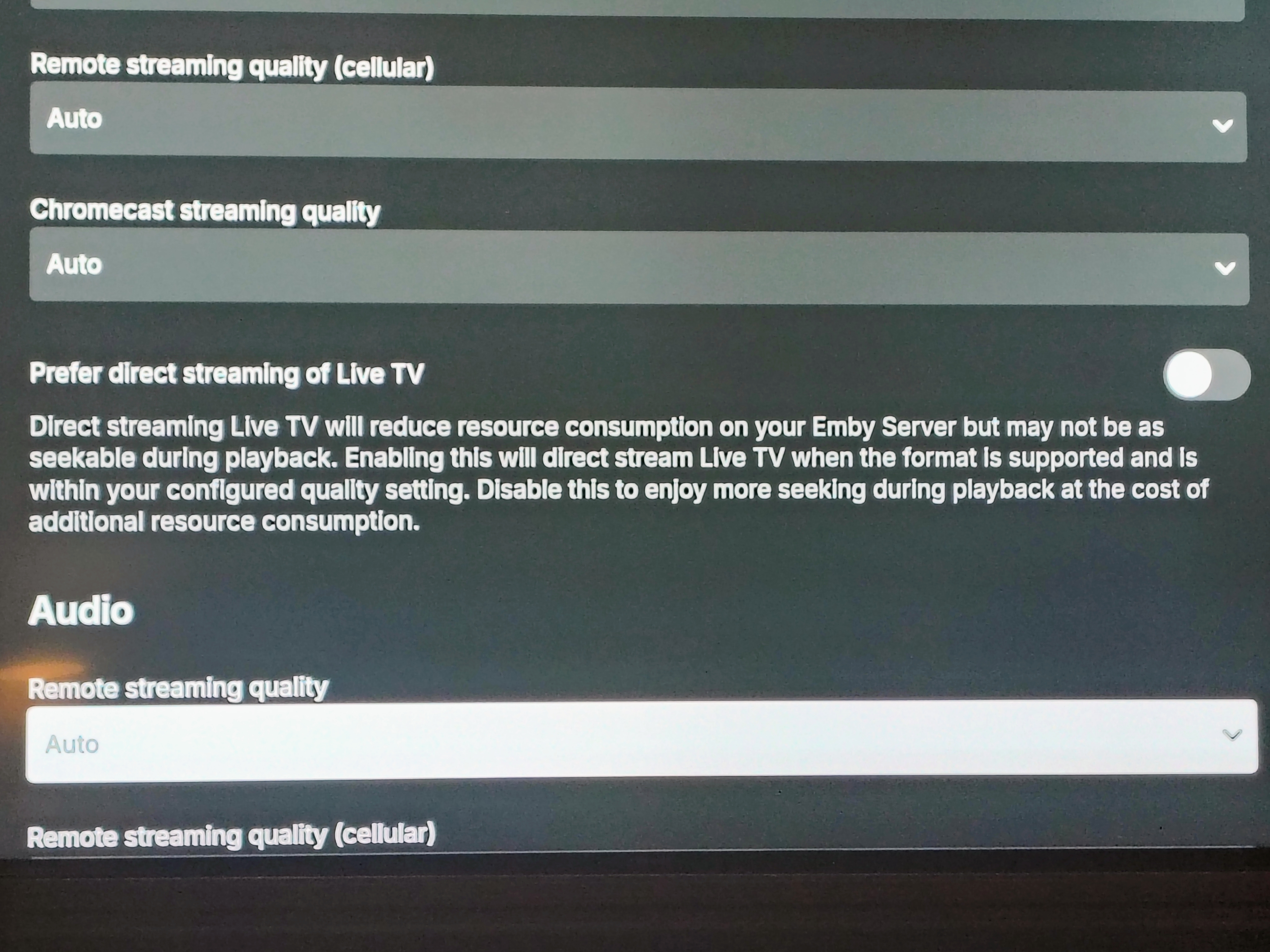 Luke 42077 Posted January 4 Posted January 4 On 12/31/2025 at 7:02 AM, ab123ga said: Jumping in here...may be a different thing. I'm using fire sticks. In the Emby FireTV app when there is an in-progress recording, for me at least you can start the recording and move forward. However the Emby Android version does not allow you to fast forward if the recording is in progress. Once the recording is complete, its fine. I have 8 firesticks and it works this way on all. I can do the same via web and FF successfully. Hi, the app has a setting to prefer direct streaming live tv. You can disable this to achieve the same effect as what you were used to. Please let us know if this helps. Thanks.