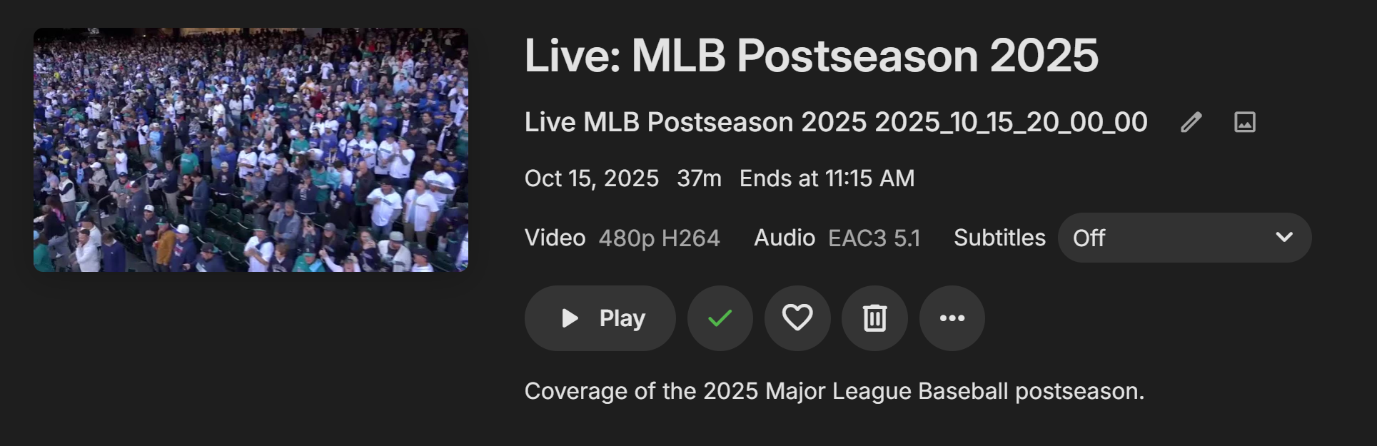 It shows in the recordings as being only 37 minutes long. When I press play there is only 37 minutes of video to watch.