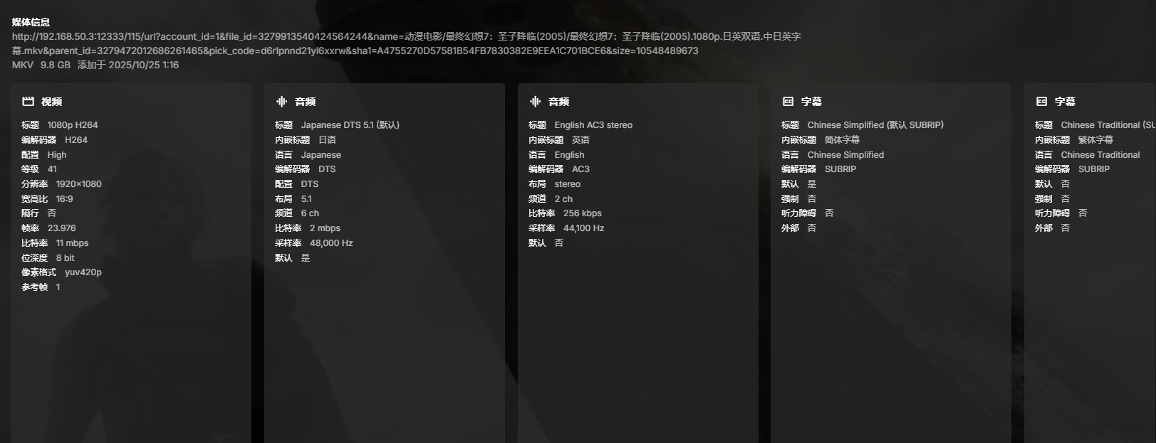 This image contains STRM file information; Emby can successfully extract the video's media information.