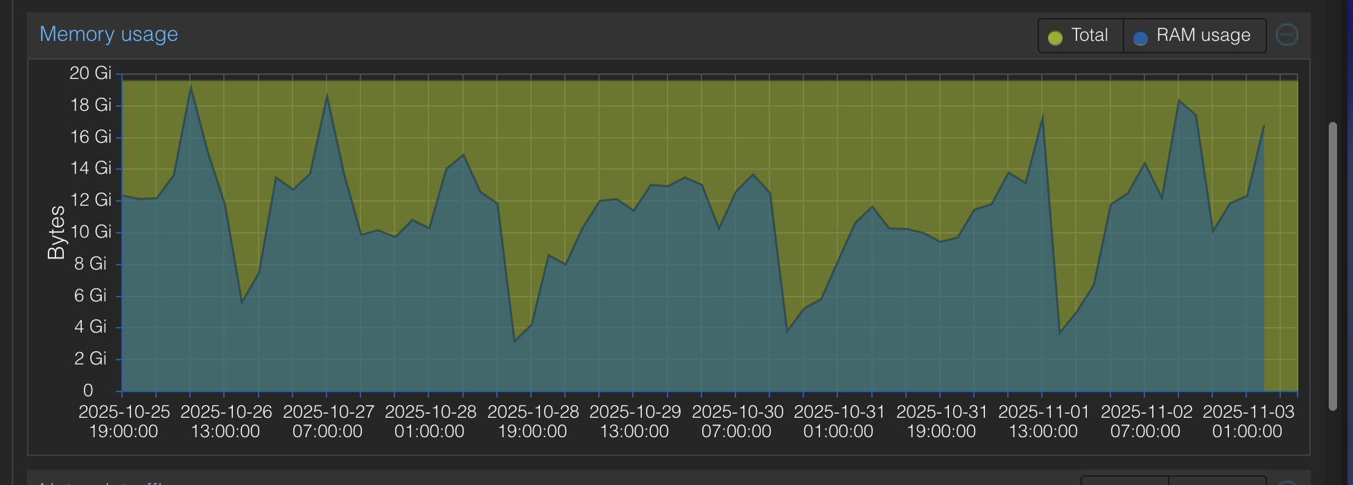 Happy2Play 9780 Posted October 27, 2025 Posted October 27, 2025 (edited) A follow up as I replicated this sort of as when I returned to the open tab on dashboard and looked at task manager it hit about 18Gb At the same time as soon as the dashboard caught up memory returned to normalish as it was still in use. So it would appear the browser tabbed dashboard is caching its entire operation in a somewhat suspended state until one looks at the open tab again. Or at least the best way to describe it. @Luke Steps I took to reproduce Open browser on localhost open tab to dashboard have client/s connect and play something then open another tab to anywhere and leave it there what a few hours and you should see the memory usage increase return to dashboard tab and see session basically in fast forward and dashboard normalizes with sessions stopping and ram usage lowering. At least in my quick and dirty test. In the end there is something with the Dashboard operations/Now Play and being tabbed that appears to be a cause. Edited October 27, 2025 by Happy2Play 1 1