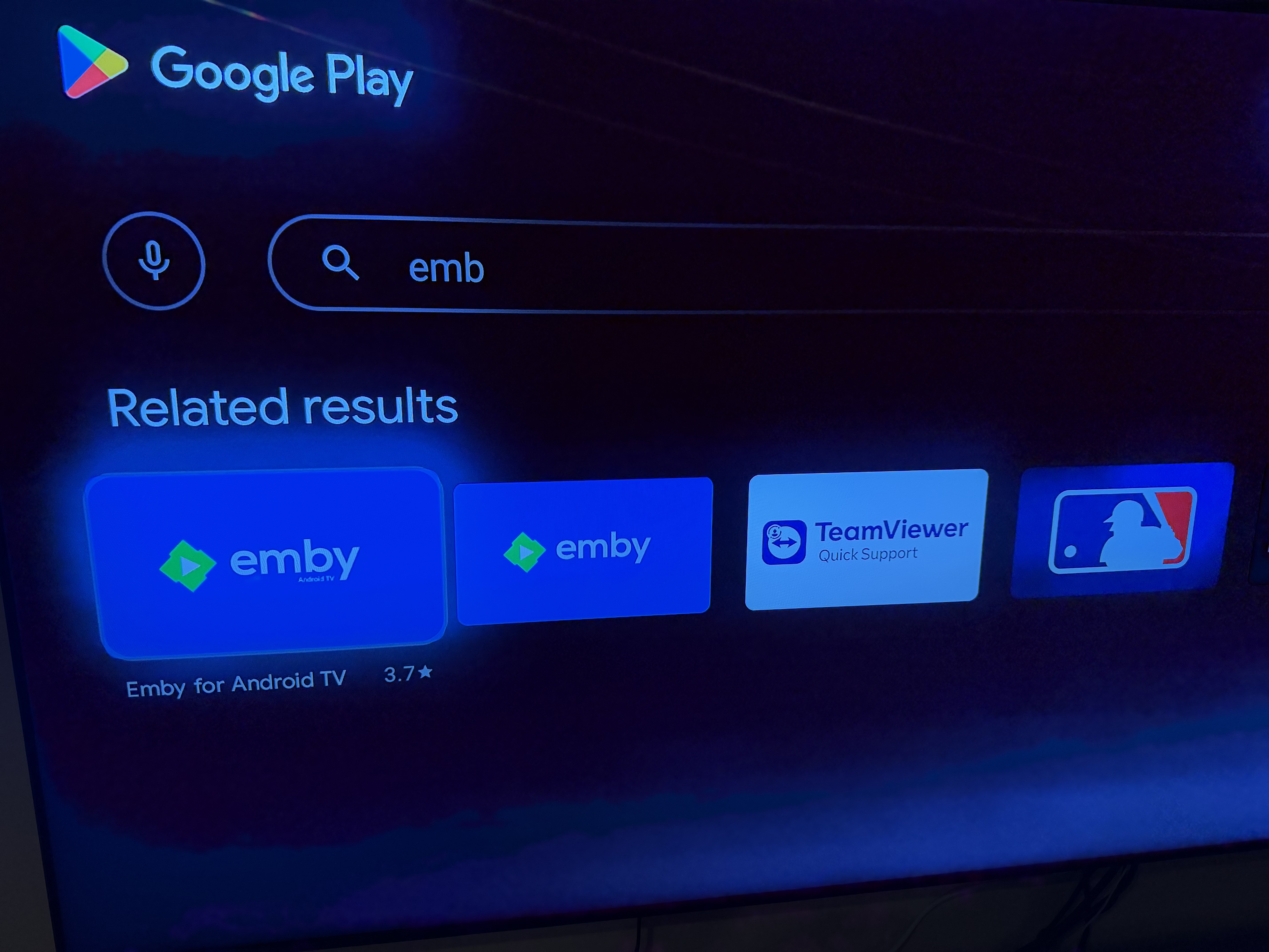 xantari 7 Posted November 11, 2025 Author Posted November 11, 2025 2 hours ago, Luke said: @xantari @Vortex7 Hi. Can you try searching for our standard android app (Just "Emby" on Amazon and "Emby for Android on Google) on the same device's app store and see how that compares? Thanks. Here is the screenshot when you type “emb”. if you fully type “Emby” the App Store immediately goes to “Emby for Android TV” and you miss out on the “Emby for Android” version 1