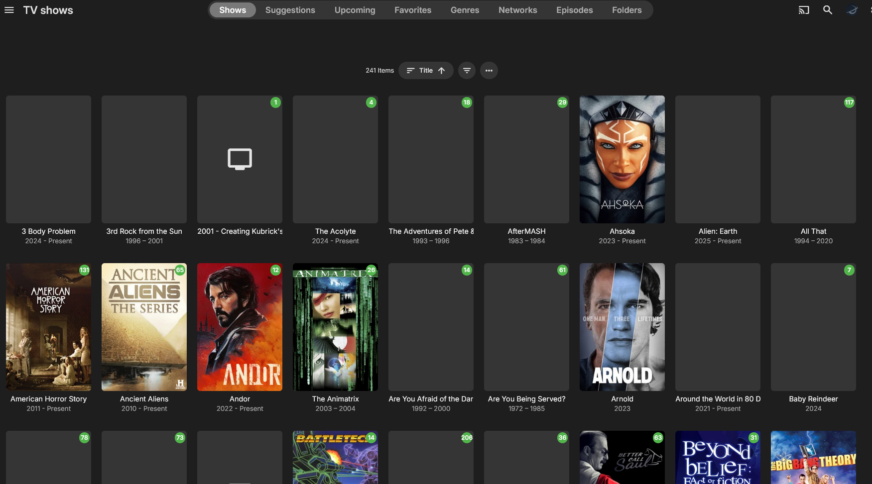 ITGuy1024 18 Posted October 30, 2025 Author Posted October 30, 2025 13 hours ago, Luke said: Ok I would try refreshing the metadata on an impacted title and see if that helps. I mean we are talking about thousands of broken items. I did a mass refresh / replace images on TV shows and it only fixed about 20% of what's broken. This is going to be a nightmare to fix.