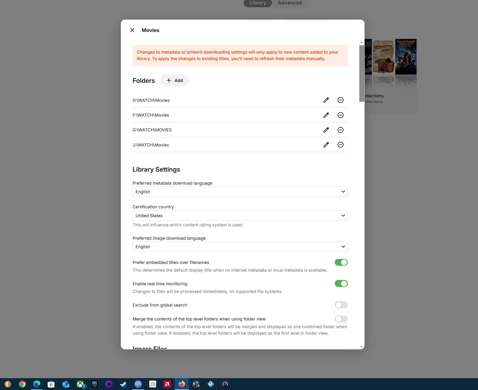 skampoet 0 Posted October 29, 2025 Posted October 29, 2025 I've only had emby for a few days and emby premiere for less than 24 hours, but I've been trying to figure out this issue for quite a few hours now with no luck. I am not super knowledgeable about networks etc, but I have set up plex and jellyfin in the past and they've worked fine. I was creating my Movie and TV libraries. Each was 3 folders from 3 different drives (drives D, F, and J) The Movie library was created perfectly. emby added all the media from(D:\WATCH\Movies, F:\WATCH\Movies, AND J:\WATCH\Movies). Then I created my TV library.. (D:\WATCH\TV SHOWS , F:\WATCH\TV SHOWS ,AND J:\WATCH\ TV shows). emby was not adding any media from F:\WATCH\TV SHOWS. No matter what I try I can only get the tv shows from the D and J drives to work. What I have tried to fix it: 1. Created a new 'WATCH' Folder on a new drive, just to see how it reacted. G:\WATCH\MOVIES and G:\WATCH\TV SHOWS... Emby added the media from the G-movies folder but not the G-TV shows folder. 2. checked the folder permissions and security. each drive and folder have full access 3. I cant even remember what else i have tried. Ive been trying so many things and am totally lost. So basically emby is only adding shows from the D and J drives, not the F or G drives. The media from the "Movie" folders on all 4 drives are adding just fine. I have the same file naming pattern throughout my entire collection, so I am not sure what the problem could be. Any help would be greatly appreciated. embyserver.txt