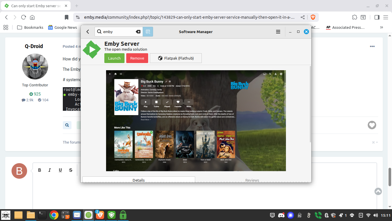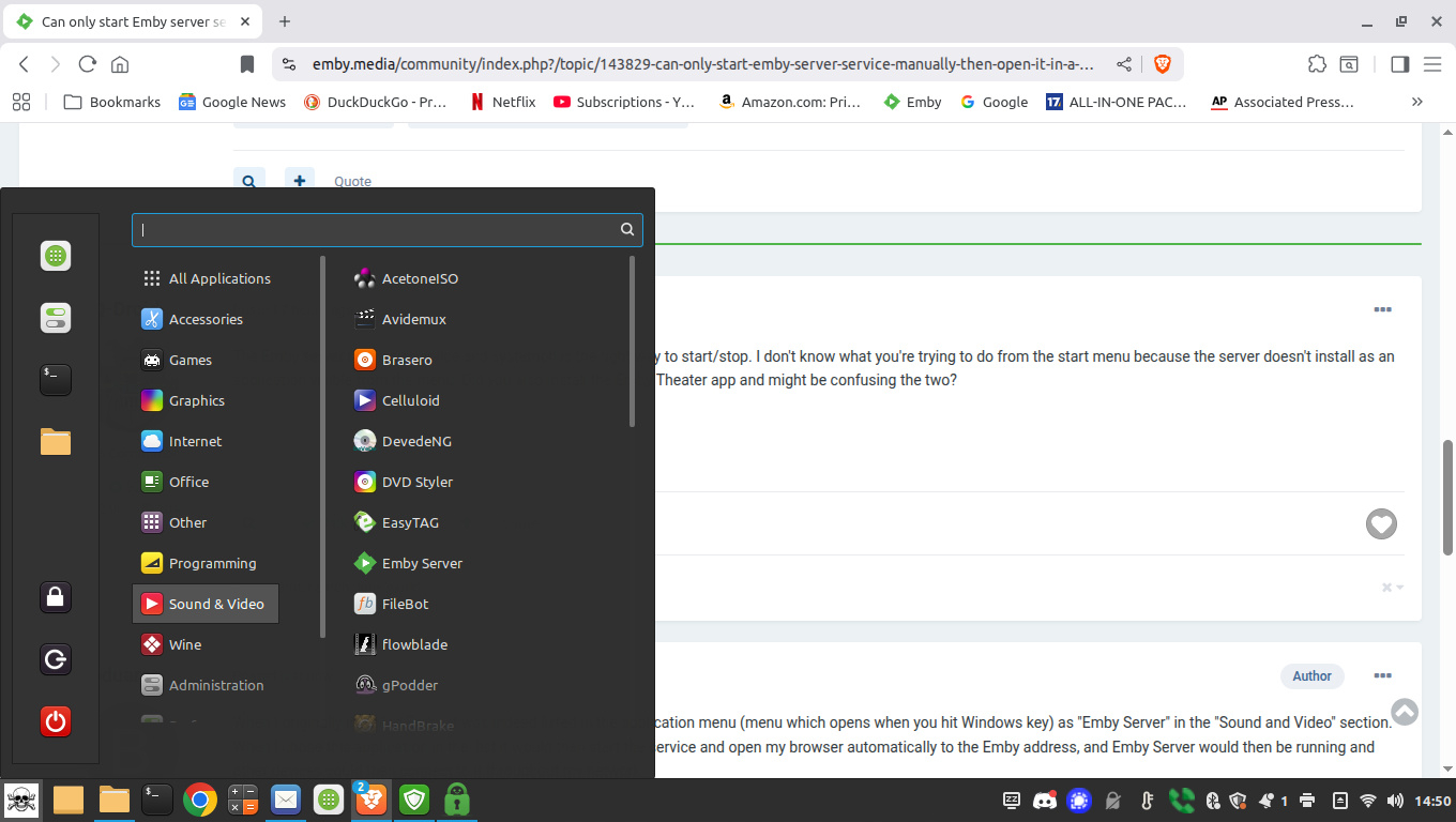 Q-Droid 989 Posted October 31, 2025 Posted October 31, 2025 How did you install Emby? A test installation for me on LMDE7 does not show any Emby apps in the menu. The Emby server should start automatically by systemd on boot unless you've disabled that. You can see if it's enabled or disabled with: # systemctl status emby-server