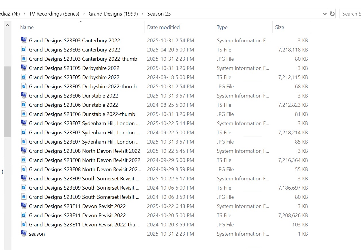 Erik 124 Posted October 31, 2025 Author Posted October 31, 2025 (edited) Sure, Restarted Emby Service Folder as of now Notice no .bif files Selecting refresh on this No change, same DIR image as above, images for each file but no .bif files are not created. This time the images updated it seems, but took a longer time (I used to be able to watch the files removed and added in seconds). ----- Same test with Season 24 of the same show and it never re-adds the images, info or bif file. I can provide additional logs if needed. The timestamp is from 2:20pm EST (started refreshes) quick-extract-imageseries-0BA4DC64DCBE_1.txt quick-extract-imageseries-0E436D712A6D_1.txt quick-extract-imageseries-A409AEDC6615_1.txt quick-extract-imageseries-C1A0689AEFA1_1.txt embyserver.txt Edited October 31, 2025 by Erik