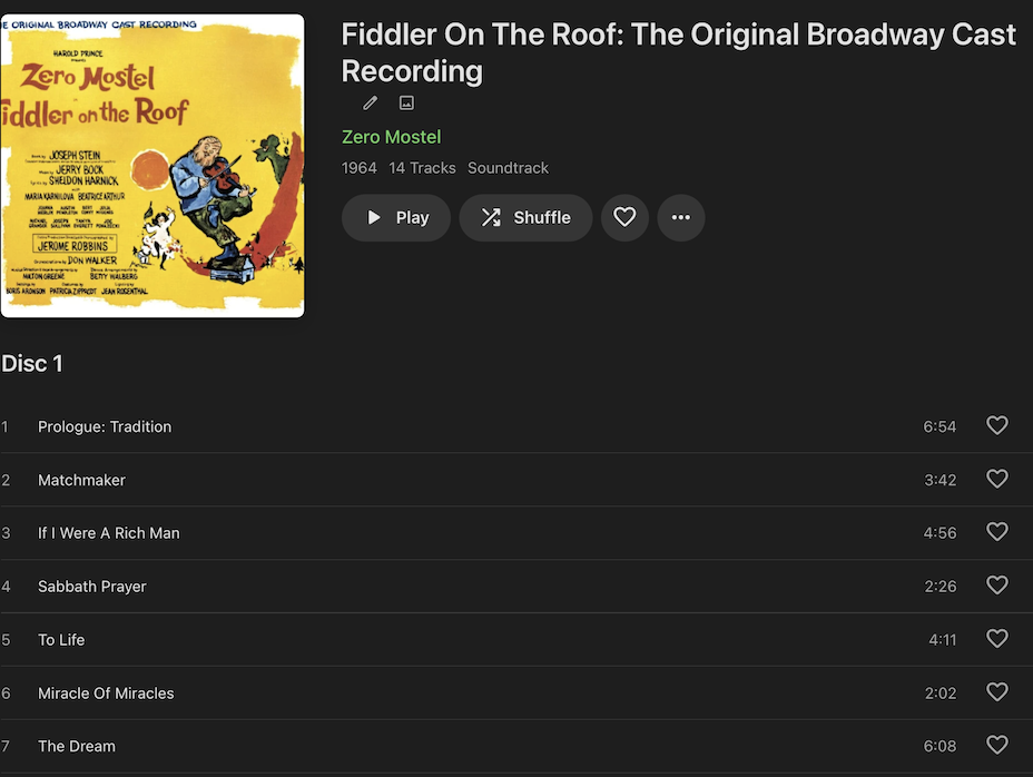 Happy2Play 9780 Posted November 18, 2025 Posted November 18, 2025 And depending on the embedded metadata and options enabled on library the version could be wrong also with 10 release versions. Release group “Fiddler on the Roof” by Jerry Bock & Sheldon Harnick - MusicBrainz