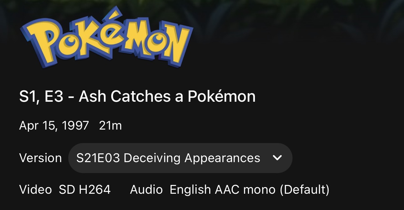 pigpog8 8 Posted November 21, 2025 Posted November 21, 2025 (edited) Hello, I was trying to play Pokémon season 1 for my daughter, and S1E3 seemed to be the wrong episode. So, I skipped and went to S1E4, and it was also wrong. I then realized that Emby is preferring a different version for each, specifically from season 21??? So S1E3 was preferring S21E3, etc. See attachment. all of the files are properly named SXXEXX and in their corresponding season folders. Why is Emby preferring an episode from a completely different season? Is there a way to tell it to get rid of the versions, or at least prefer the correct one? I noticed I changed it on my daughters account, then I had to change it on mine as well, so it’s not a server wide change unfortunately and would be a lot of work to do each manually. Edited November 21, 2025 by pigpog8 Title correction