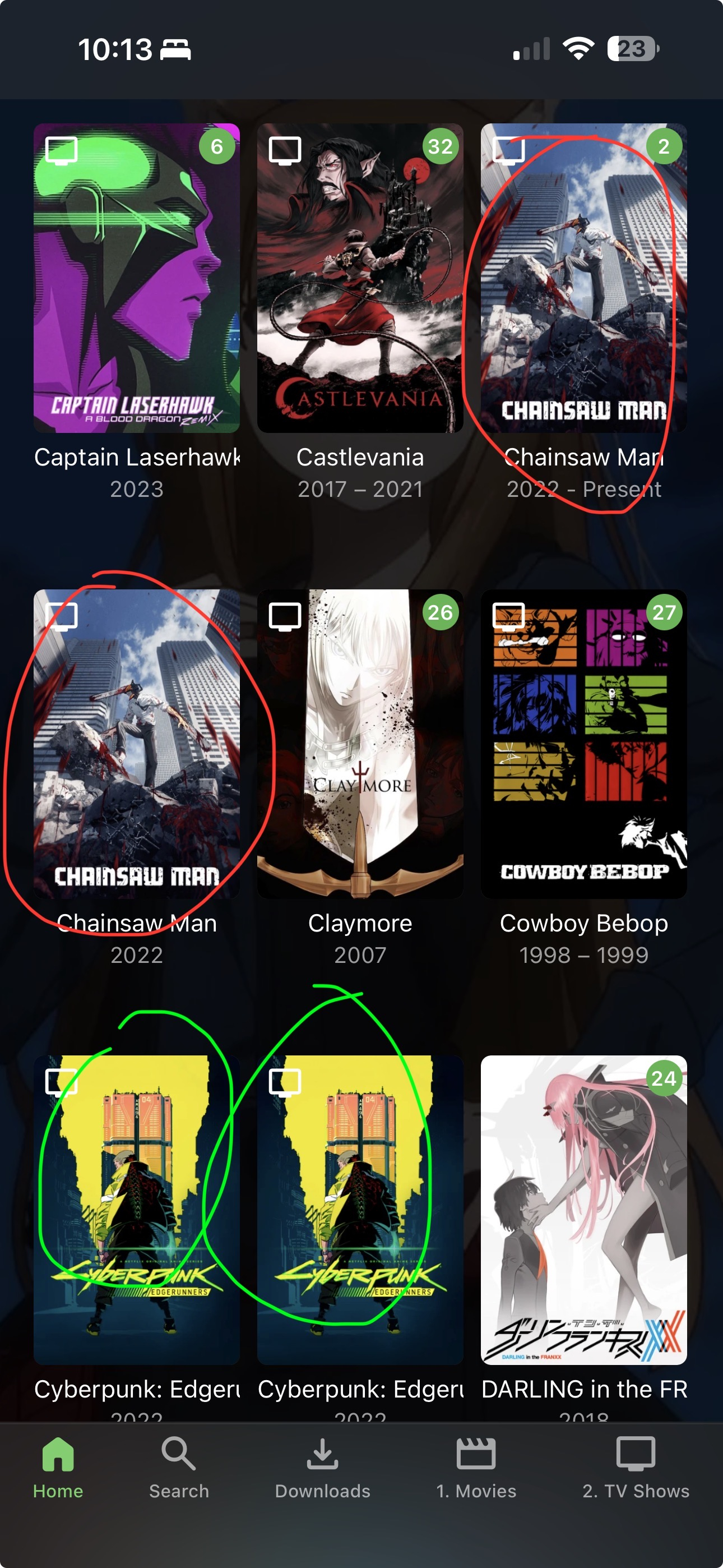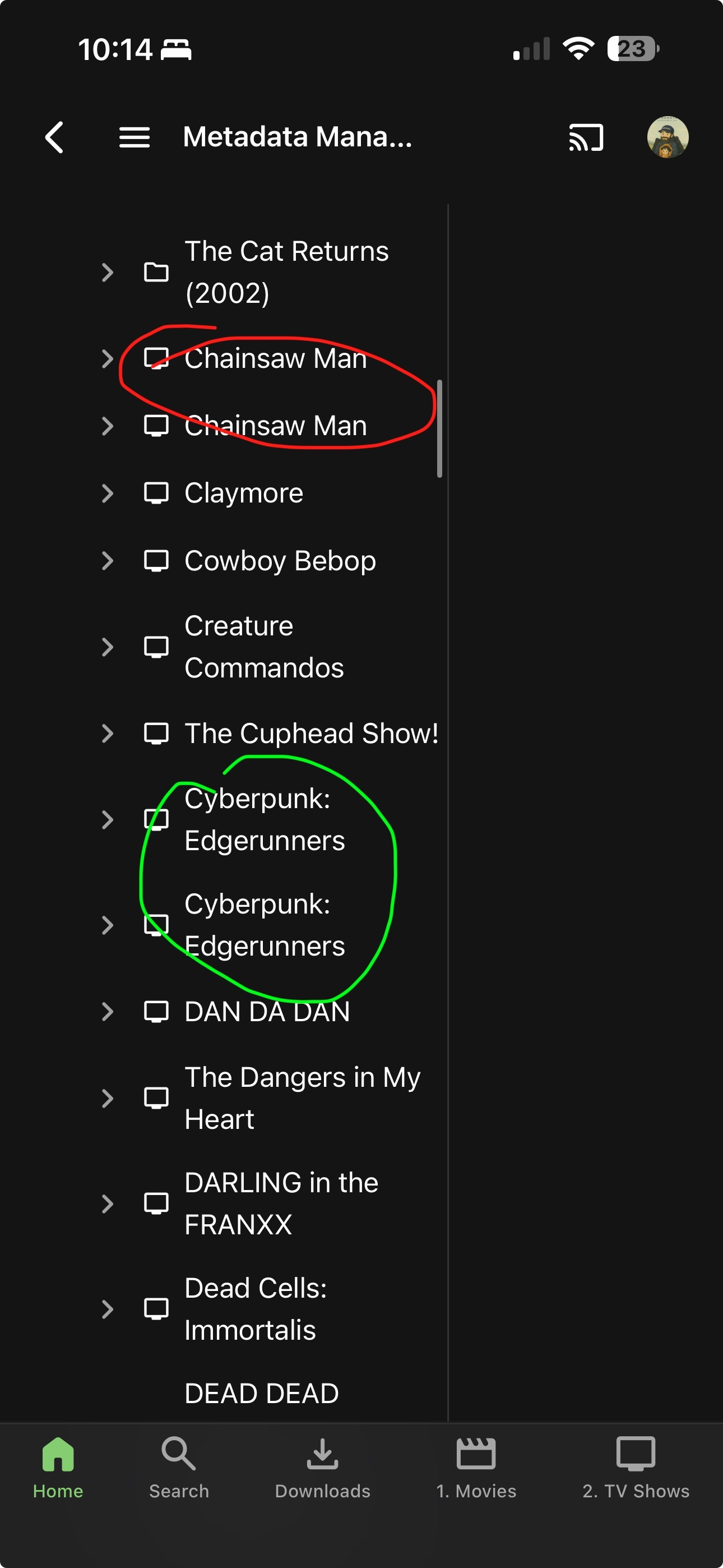 After the Scan, I noticed one of the duplicates went away, which is good so far, but for some reason 1 remains even though Chainsaw Man should no longer show up in the library (and it's the one that shows 2 episodes unwatched, even though it should show 0 unwatched, strange). Hopefully the metadata refresh will fix that? Still waiting for that to finish.