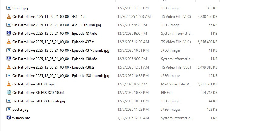 AmericanMike 17 Posted December 9, 2025 Author Posted December 9, 2025 in the attached you see three .TS recording made with the Emby PVR function. They play fine and I can fast forward through them but there are no thumbnails to reference so its tough for me to skip through the commercials. I took the file containing Episode 438 and converted it to an MP4 and placed it back in this directory. Within several minutes it created a .BIF file and thumbnails were present. This used to work flawlessly but cannot pinpoint exactly when it changed.