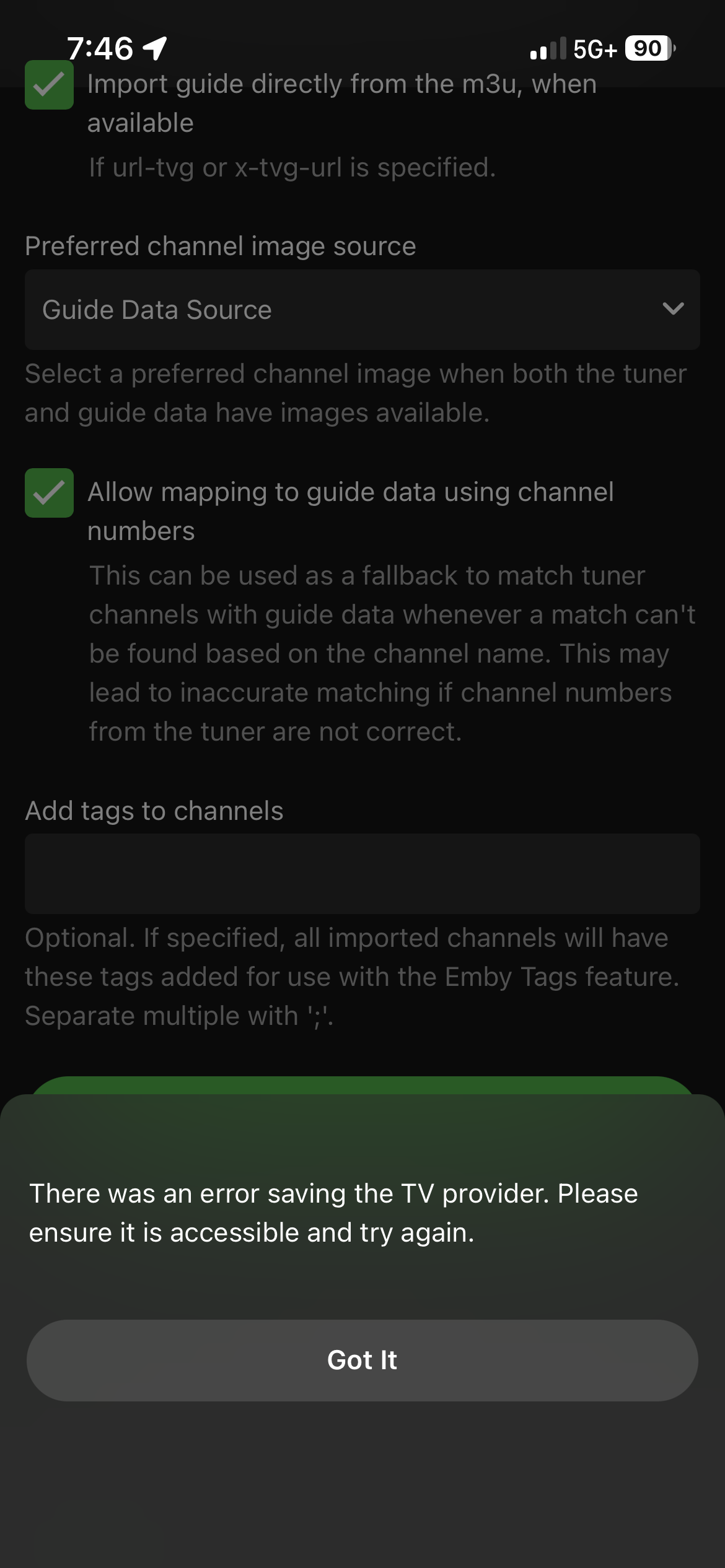Emmanueld 0 Posted December 23, 2025 Posted December 23, 2025 Been using Live TV for almost a year now with no issues. Yesterday all channels stopped showing, just had an error message. I deleted the playlist, restarted my server, and tried adding it back, but now just get an error message that there was an error saving the provider. I know it’s not the provider because I was able to add it to Tivimate with no issue. Live TV is the only reason I have Emby Premiere, so need this fixed if I’m going to keep it.