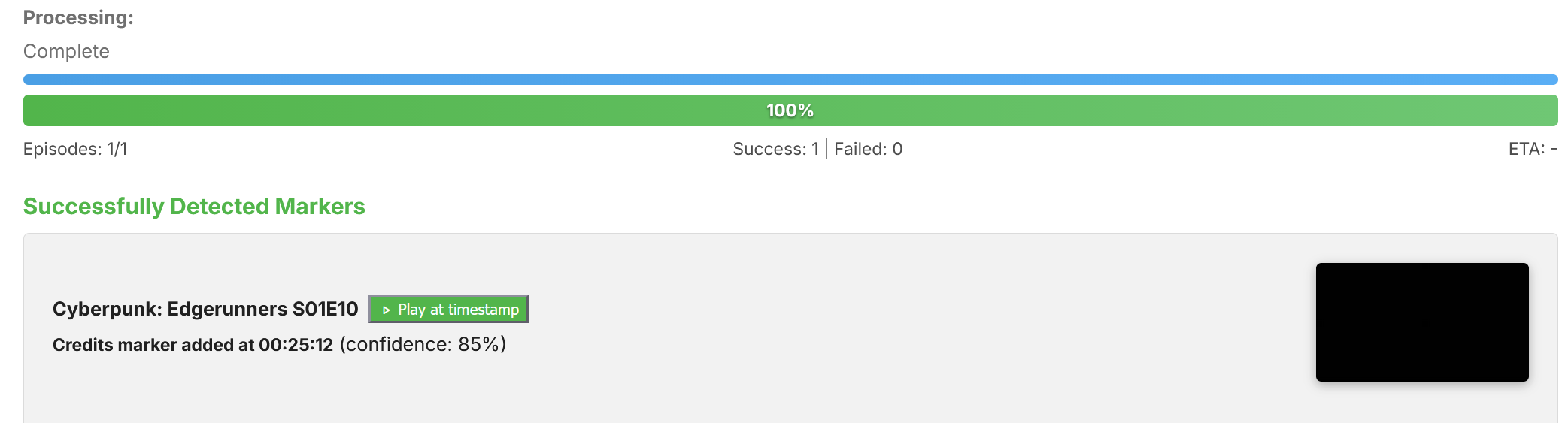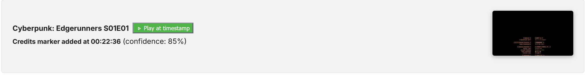 yocker 1247 Posted January 28 Author Posted January 28 (edited) New version (1.7.1) up on yocksers/EmbyCredits Github. Added: Setting to enable thumbnails being shown with a snapshot of the video at the detection point. Play video at time stamp button. Changed: Moved OCR enhancement settings to their own tab as they are advanced settings that can change the detections a lot or even make them not work. Moved Notifications settings to their own tab. Settings are now in collapsible sections to make the settings page less cluttered and easier to navigate. Fixed: Scheduled task will no longer look for old chapter types and will now correctly skip videos with time stamps when the setting is enabled. Note: Emby seems to have changed chapter types in the last update so old detections had their chapter types changed and no longer valid, schedule task would wrongly pick those up before as having the correct time stamps. Known bugs: Intel QSV does not work, it will require an update of Embys FFMpeg to work, developers have noted that it's on it's way. Please use VAAPI instead. Thank you to @Neminemfor help with testing and bug hunting. If you use and like the plugin please consider donating a coffee at:https://buymeacoffee.com/yockser This is by no means necessary and i'm happy as long as people like the plugin. Edited January 28 by yocker 1 1
